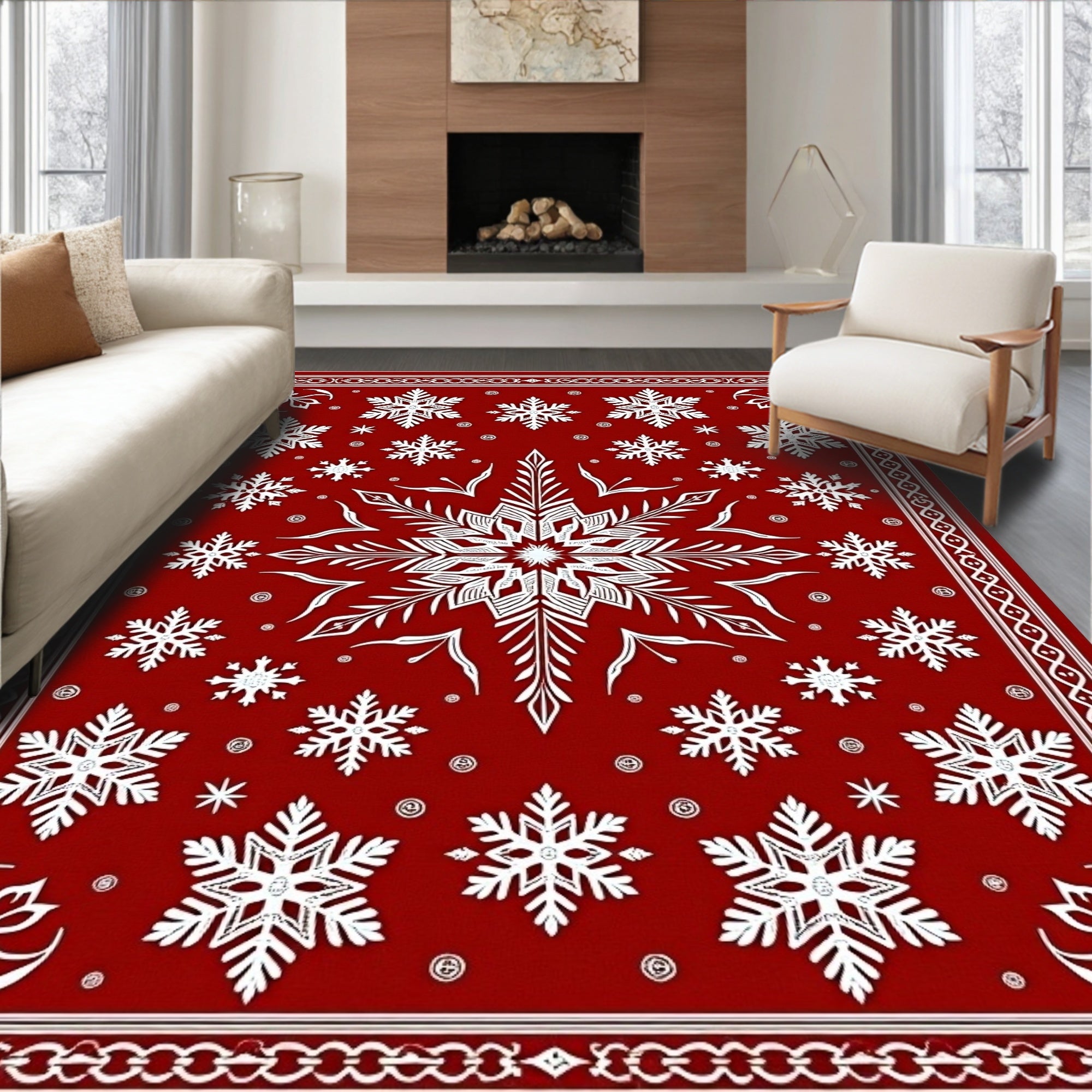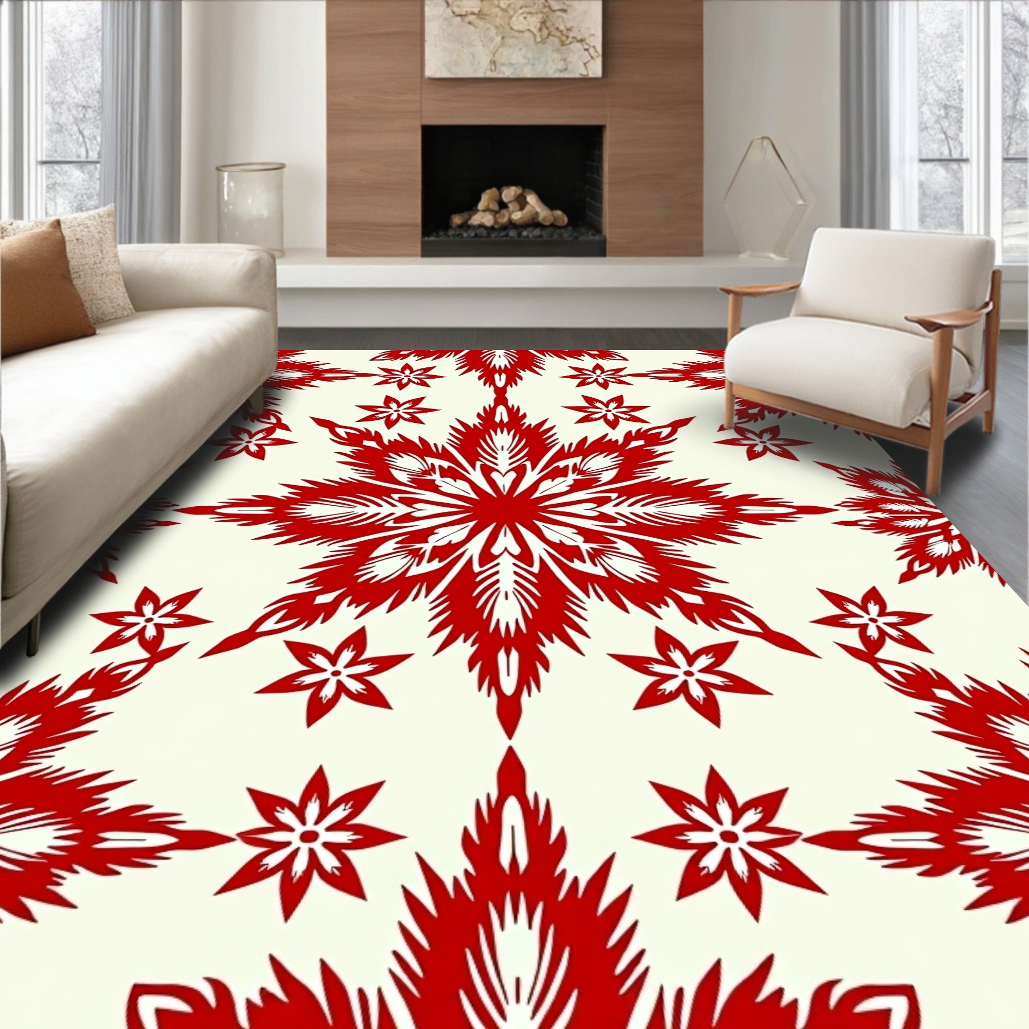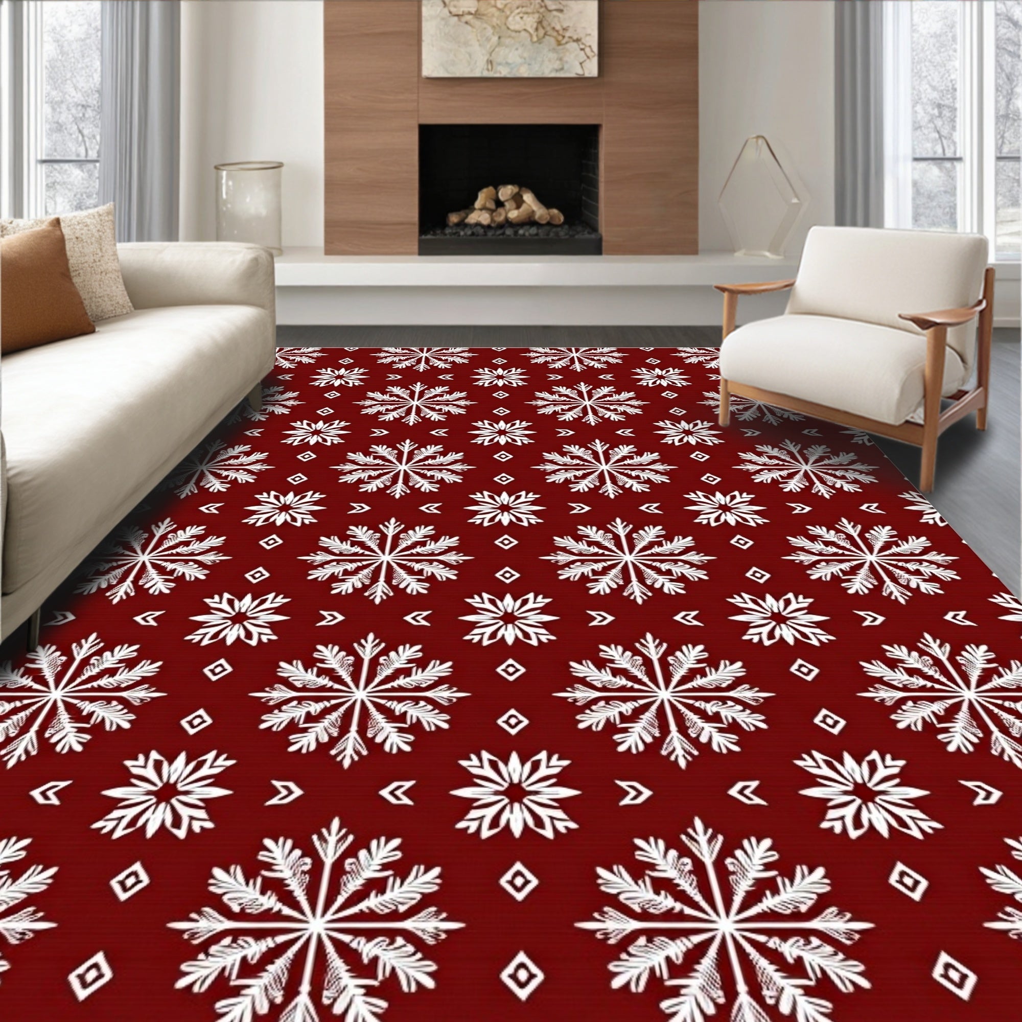 Snowflake Medallion Design Anti Slip Holiday Modern Style(Red)