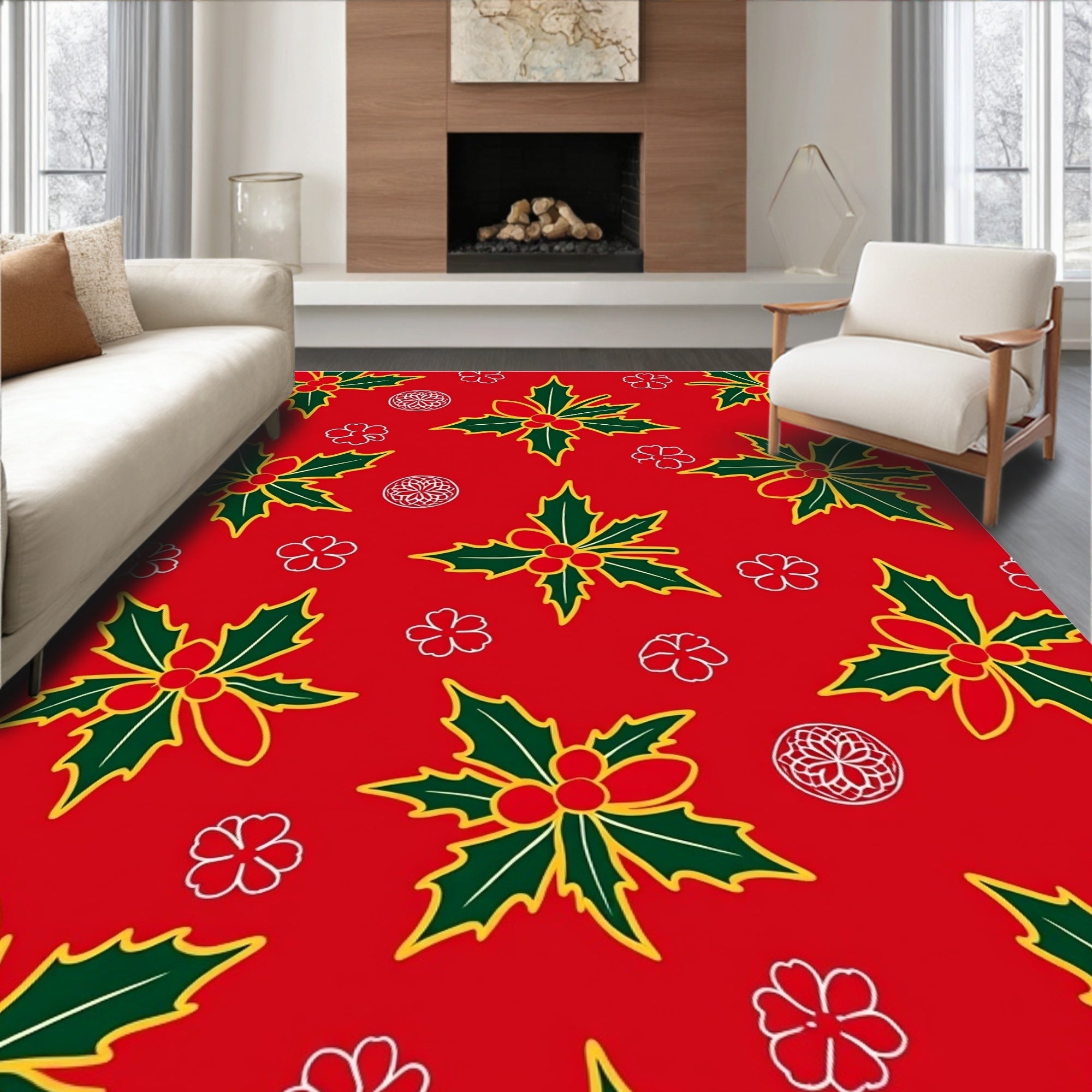 Poinsettia Bloom Motif Christmas Themed Area Floor Covering(Pink)