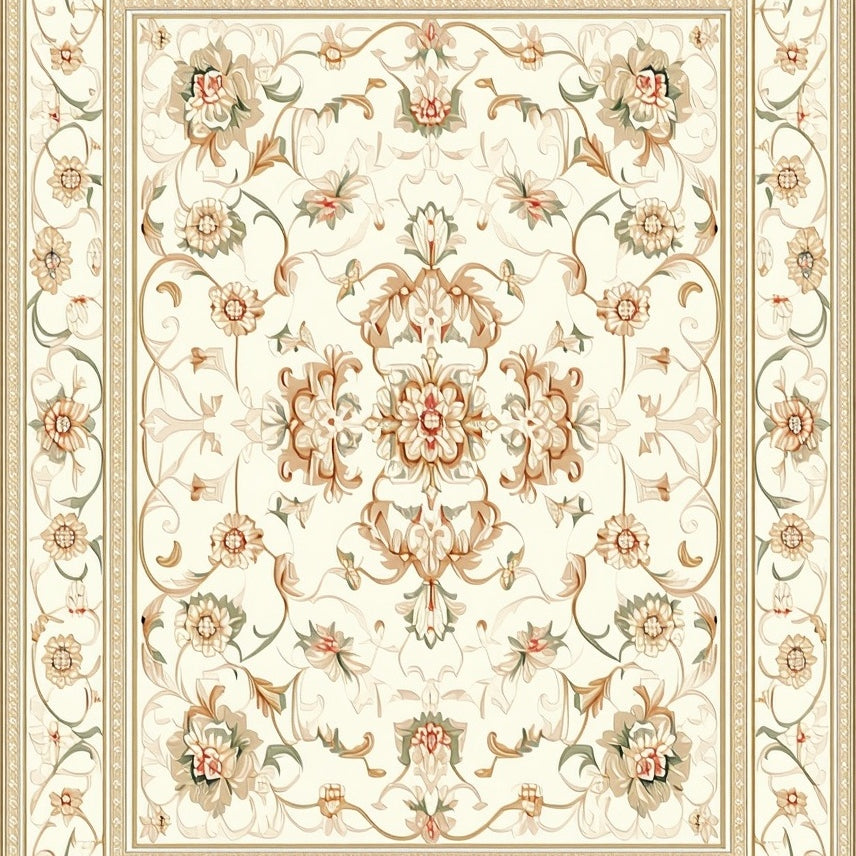 Timeless Floral Medallion in Earthy Beige Shades(Ivory)