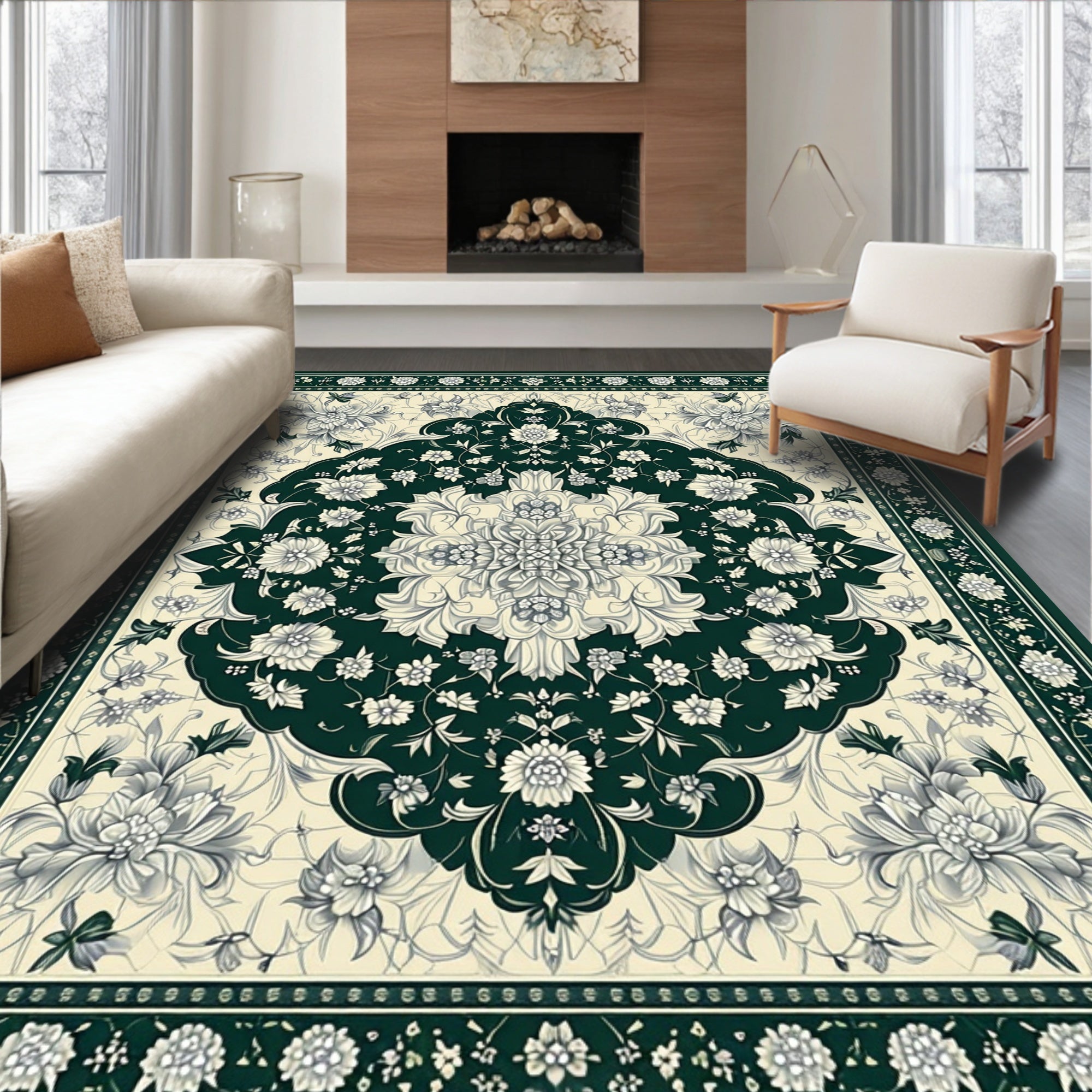 Trendy Area with Bold Black Floral Design and Subtle Beige Hues(Beige)