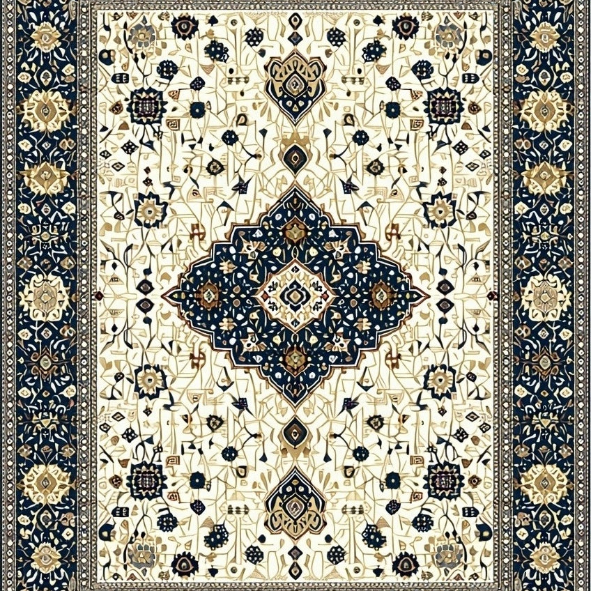 Navy and Silver Abstract Floral Area with Intricate(Blue)