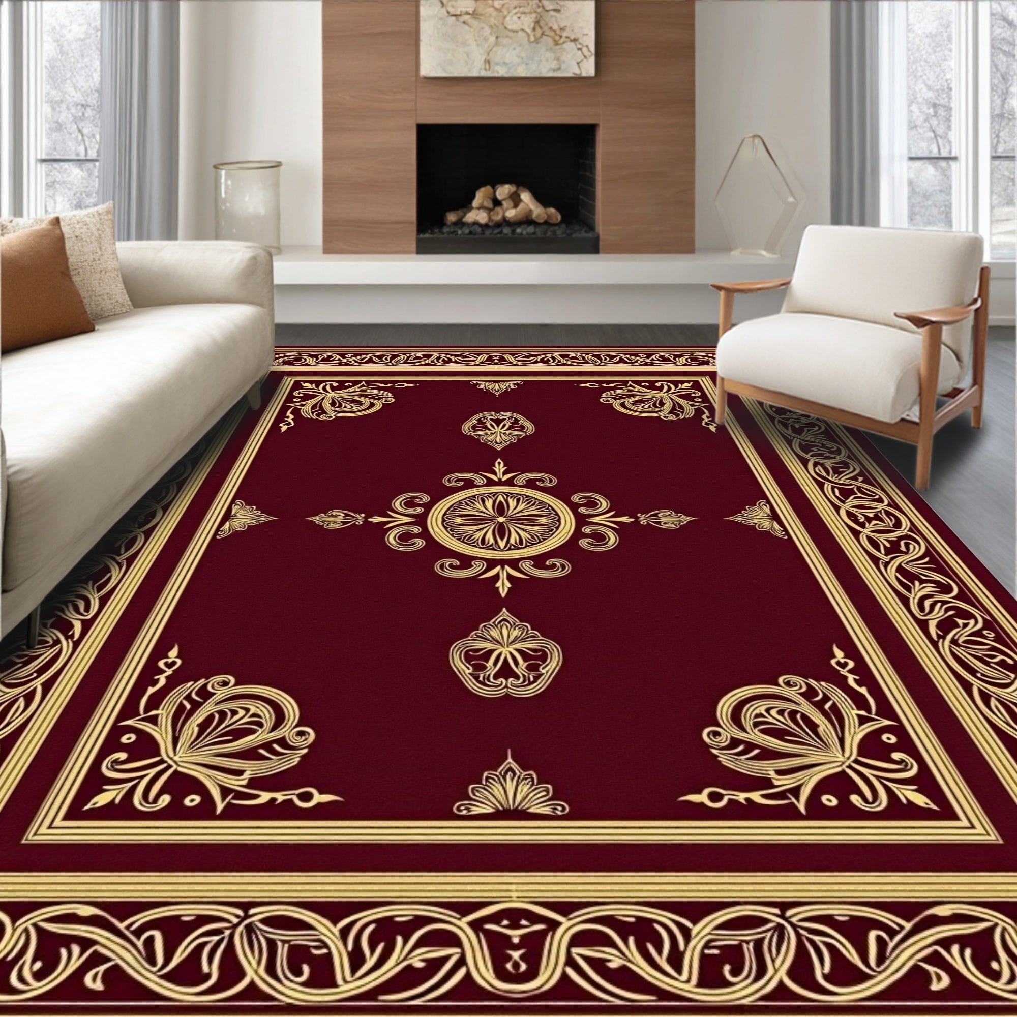 Vintage Wine Barrel Motif Area with Ornate Scrollwork Design(Maroon)