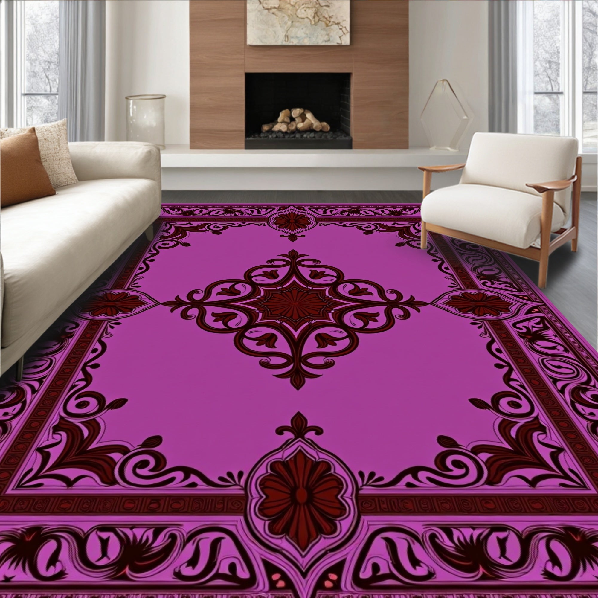 Elegant Swirl Vintage Medallion Baroque Damask Floral Motif(Purple)