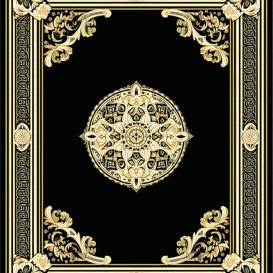 Machine Washable Area Rug Black Gold Medallion Rug(Black)