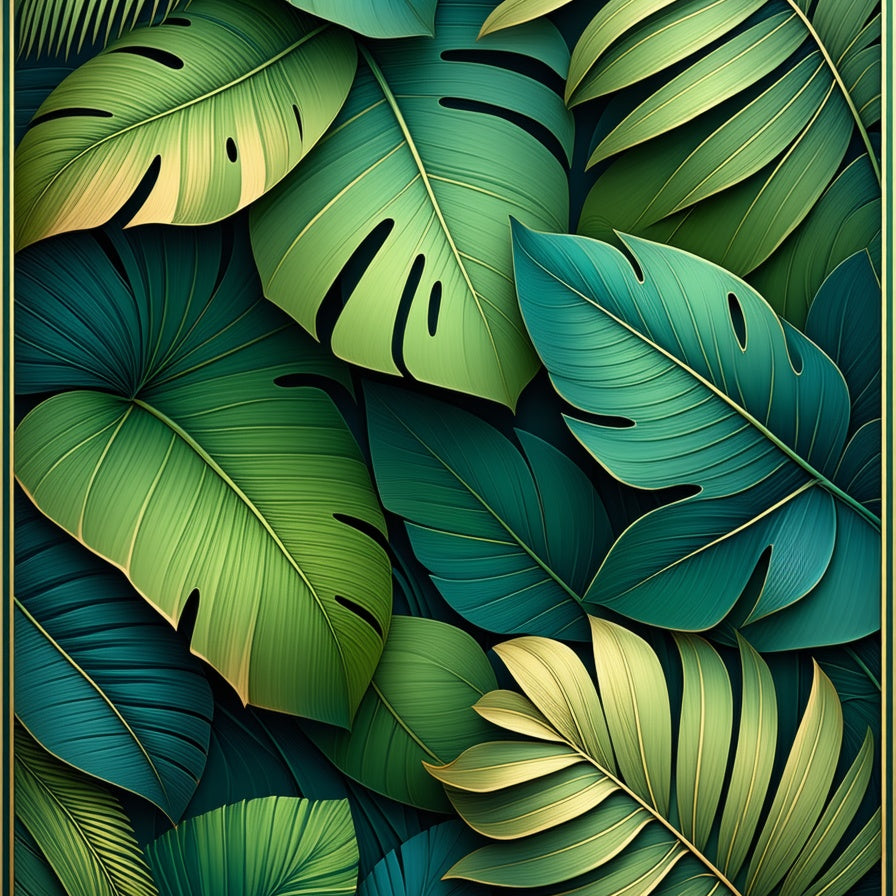 Vibrant Tropical Leaf Area Rug with Emerald Green and Gold Accents(Green)