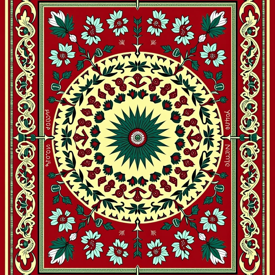 Winter Celebration Botanical Symmetrical Medallion Emblem(Red)
