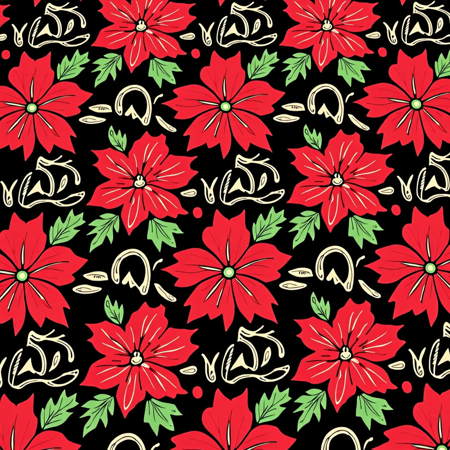 Vintage Poinsettia Bloom Christmas Floral Motif Decorative(Red)