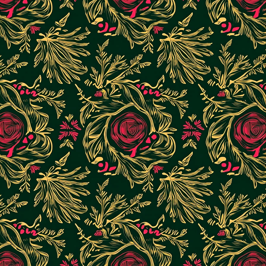 Classic Yuletide Damask with Evergreen Scrollwork(Red)