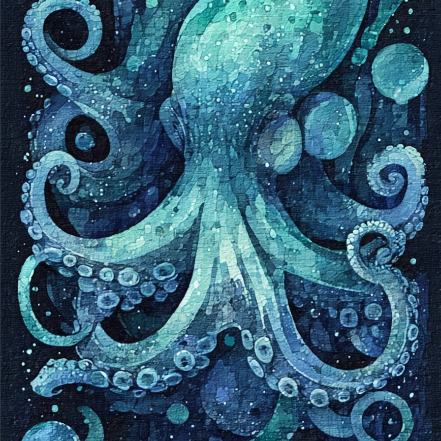 Seaside Tentacle Artwork with Gradient Aqua and Navy Blue Oceanic(Blue)