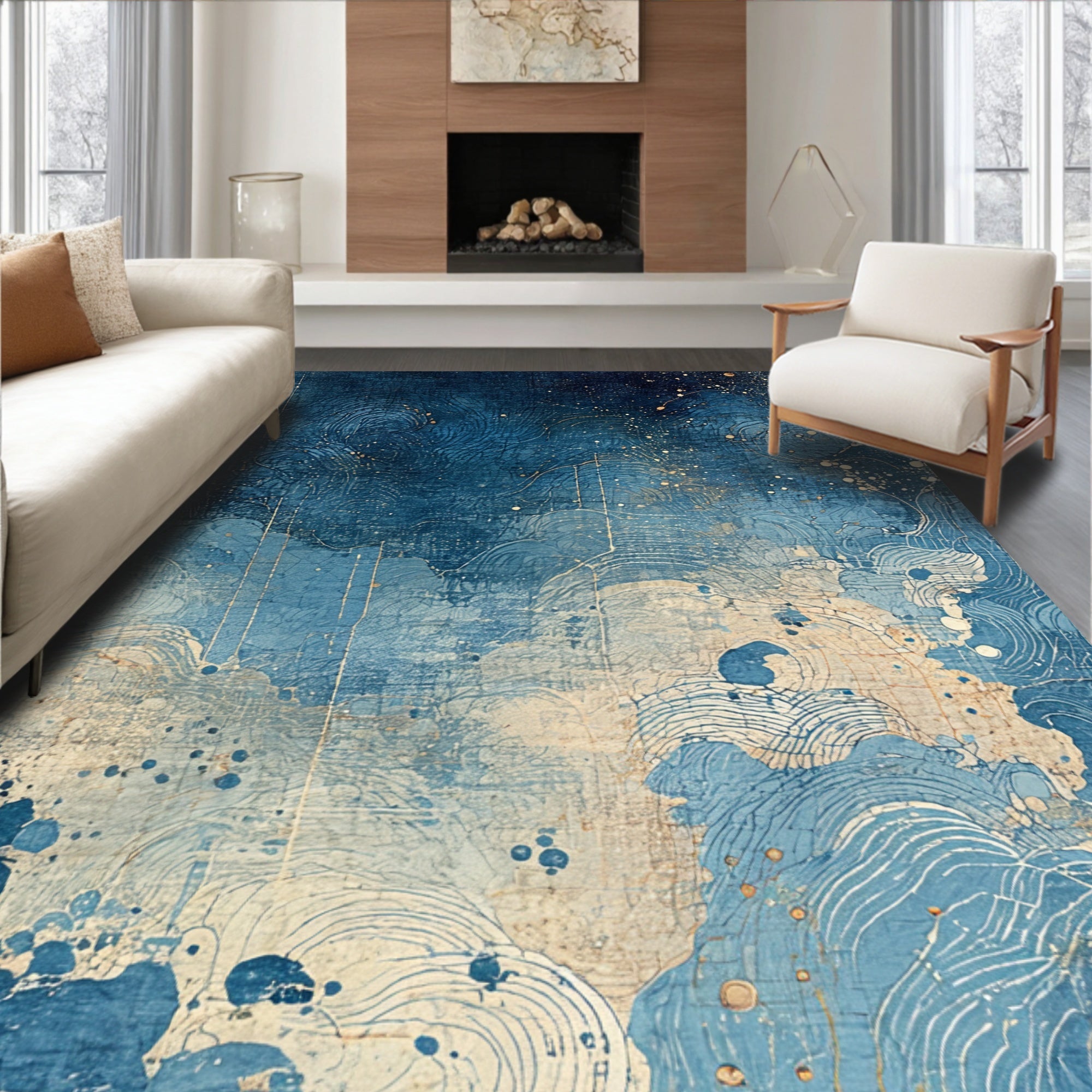 Watercolor Octopus Tentacle Dance with Nautical Sea Motifs Artistic Area Mat(Blue)