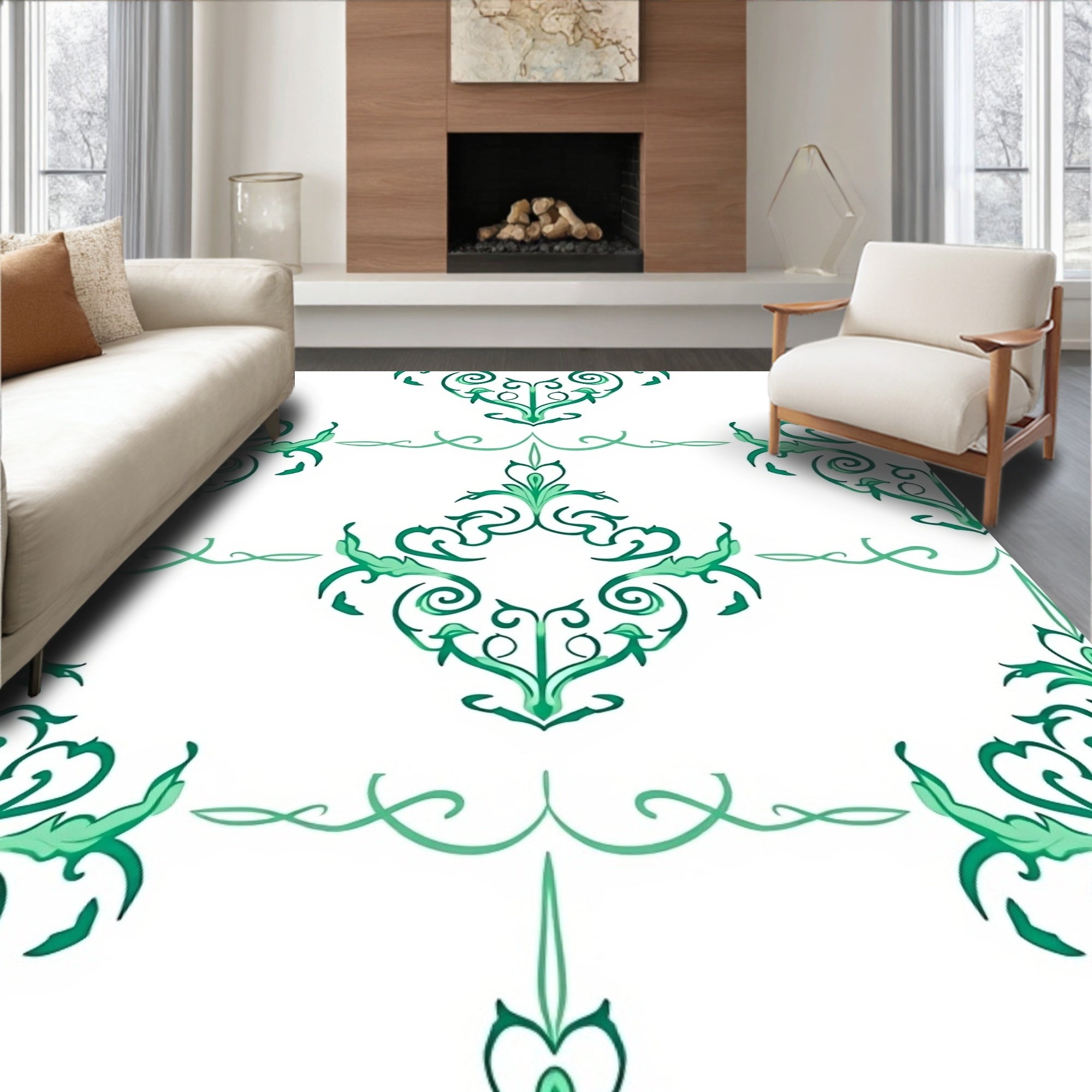 Vintage Damask Swirl Jacquard Contemporary Slip Resistant(Green)