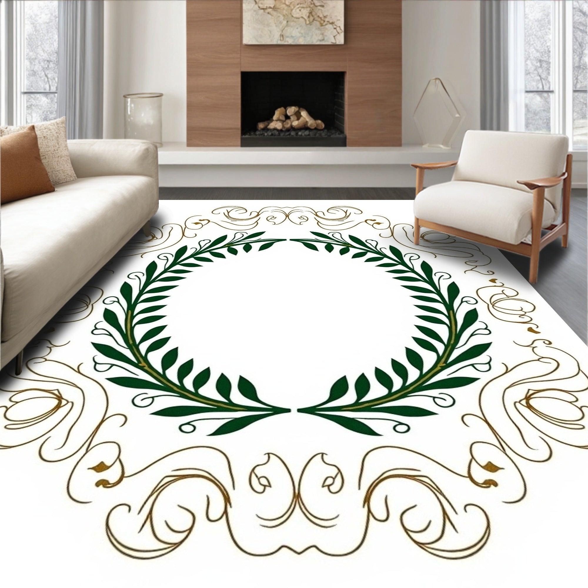 Festive Holly Leaf Medallion Boho Area(Green)