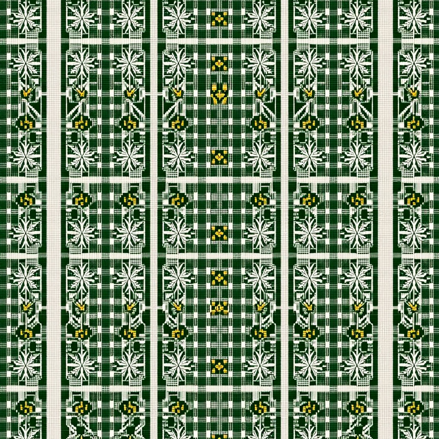 Nordic Gingham Patchwork with Snowflake Motifs(Green)