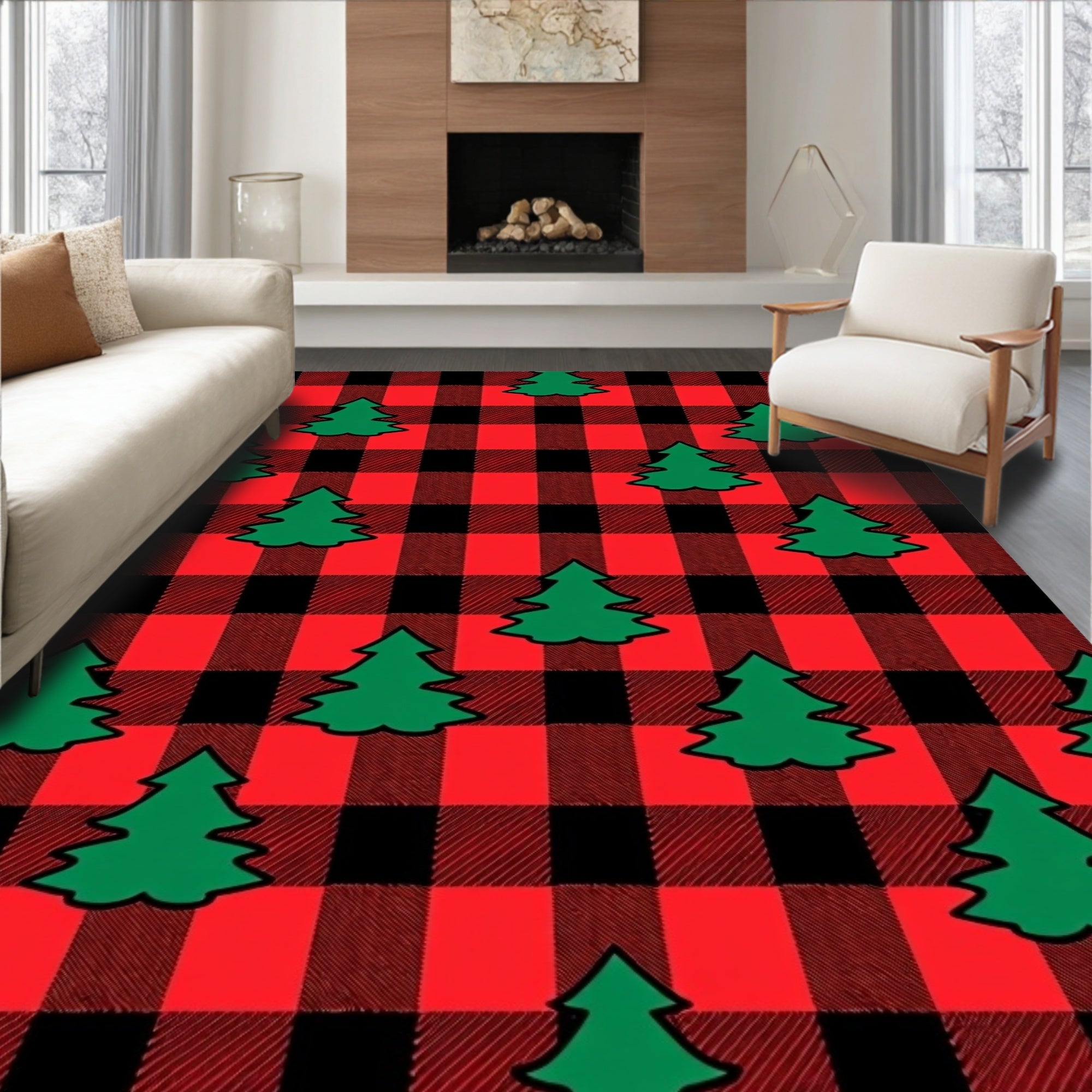 Holiday Checkered Entry with Festive Cabin Squares(Red)