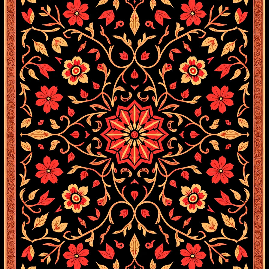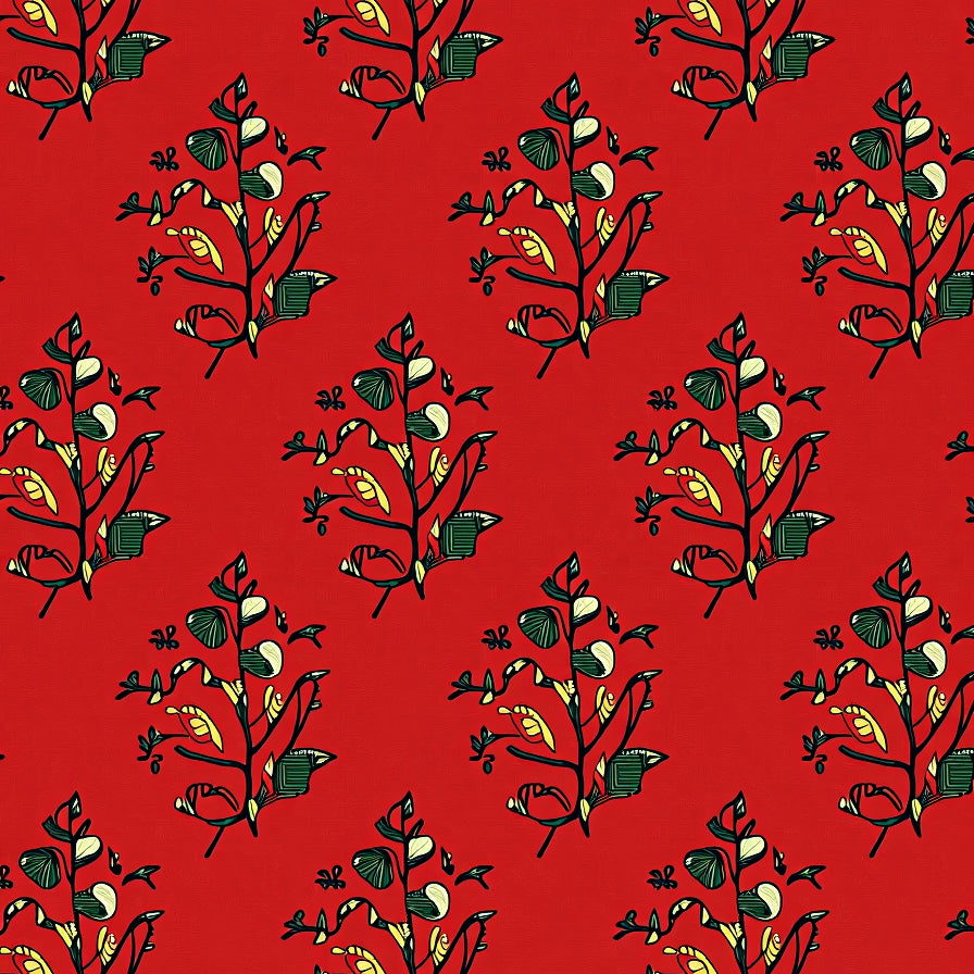 Stylized Amber Woods Motif with Flourished Botanical Embellishments(Red)