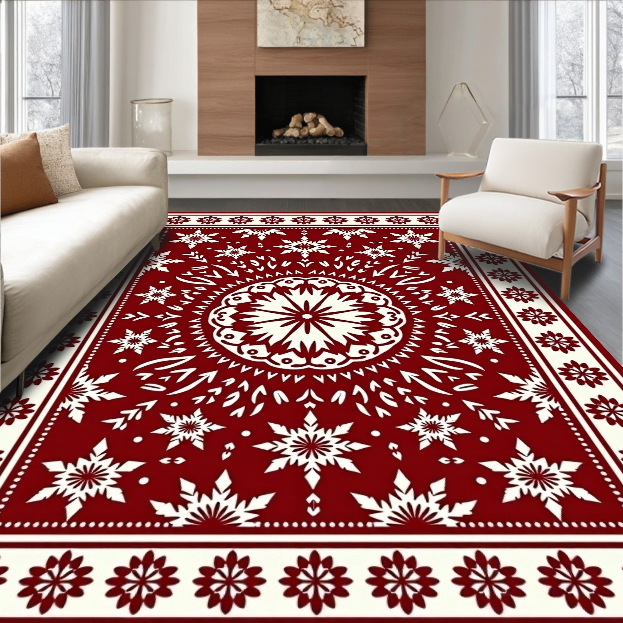 Festive Snowflake Wonderland Elegant Contemporary Decorative Flooring(Red)