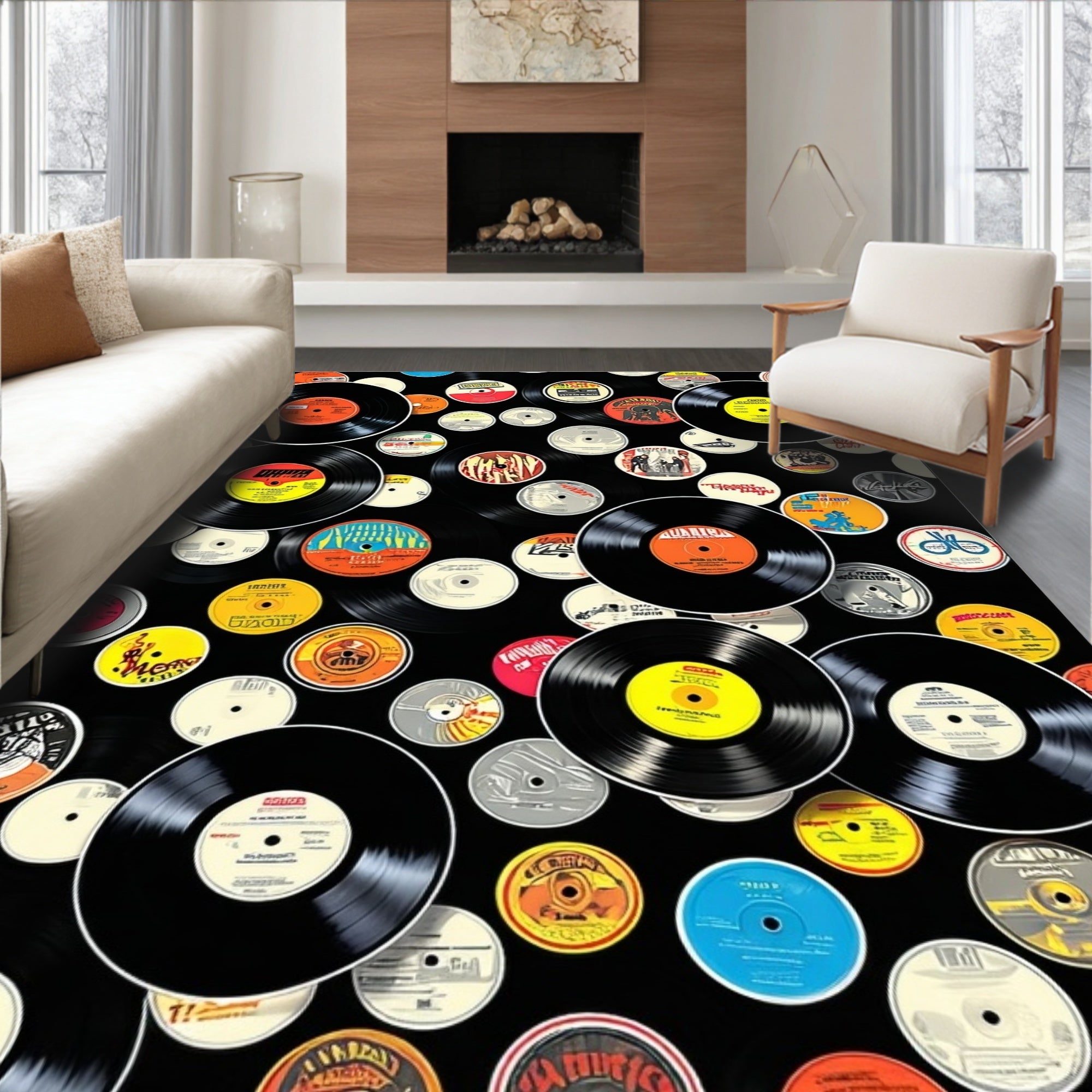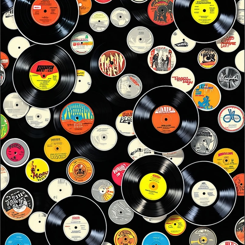 Vintage Vinyl Music Record with Iconic Rock Band Designs(Black)