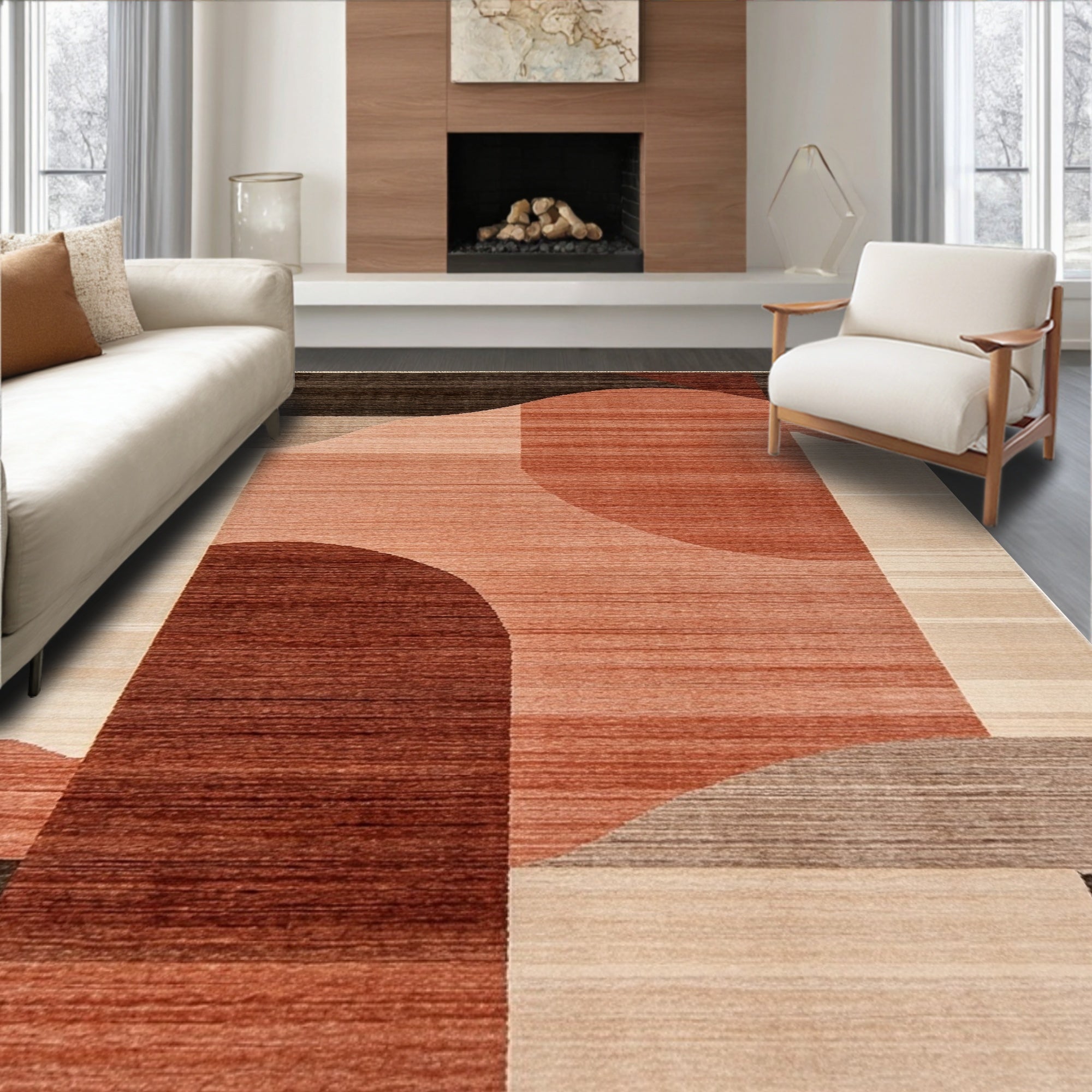 Moody Earthy Tone Area with Unique Rust Brown(Brown)