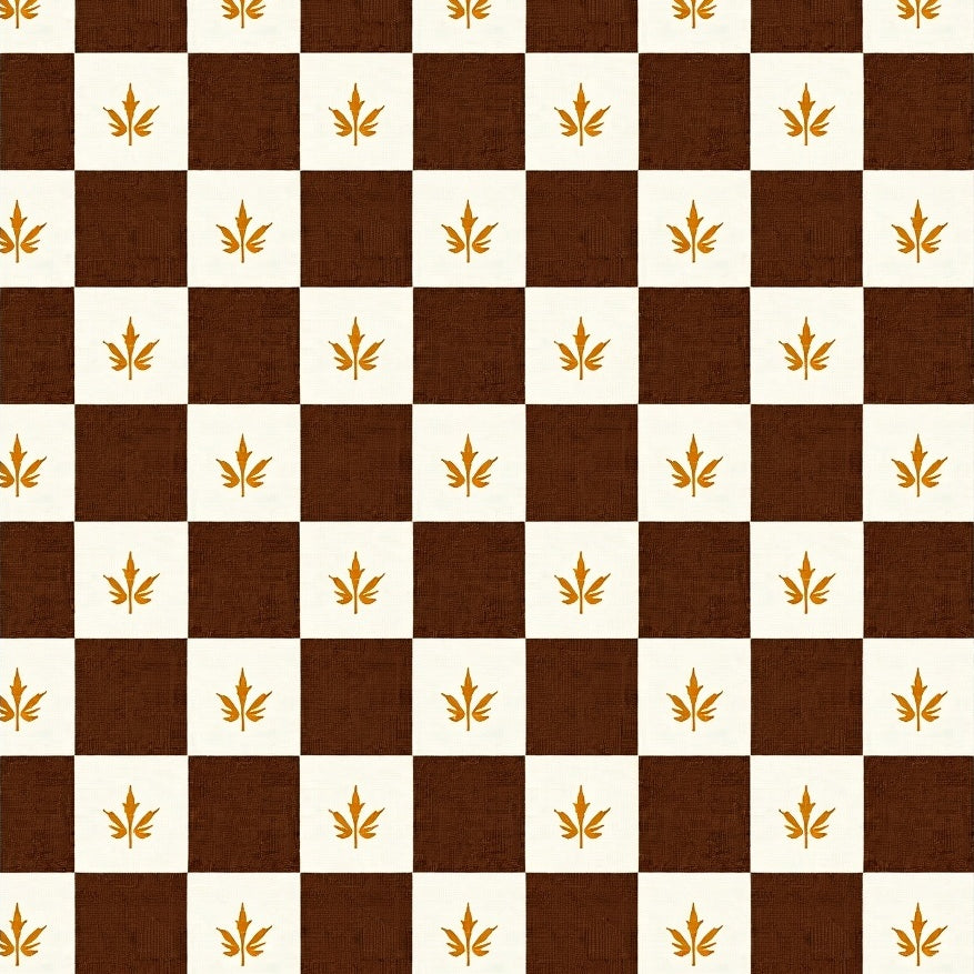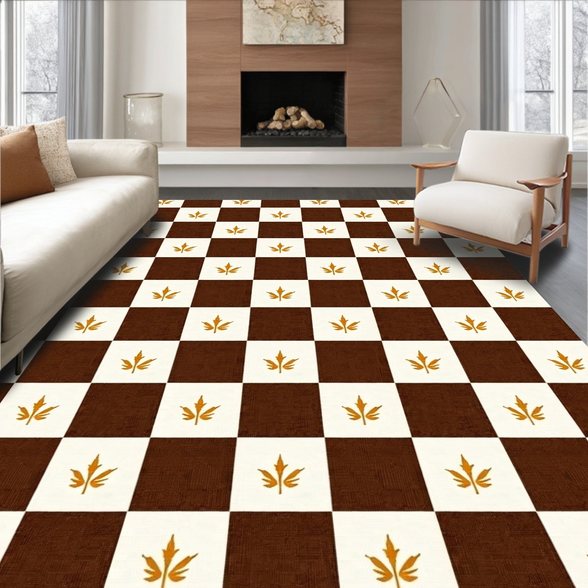 Harvest Gingham Doormat with Autumn Maple Leaf Motifs(Brown)