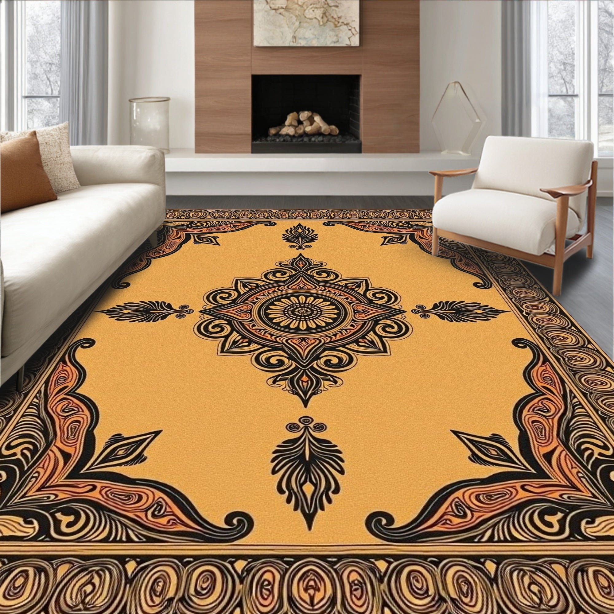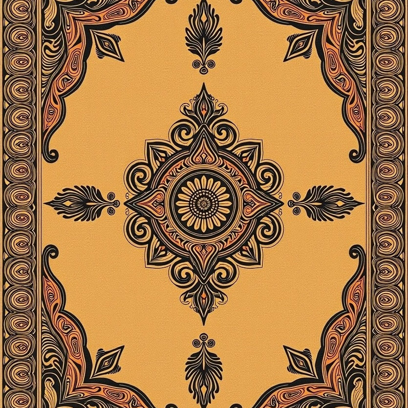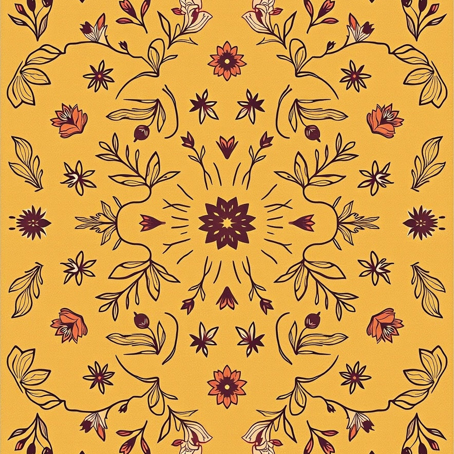 Vintage Inspired Ochre Floral Medallion with Subtle Boho Accents(Beige)