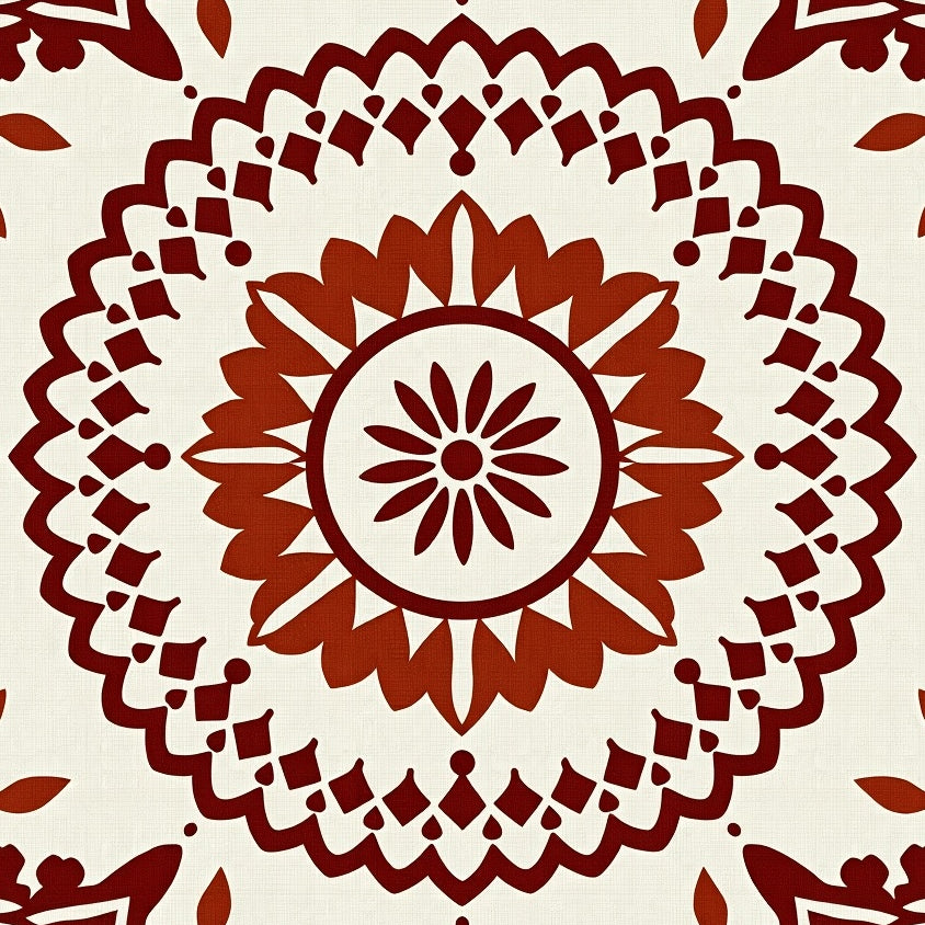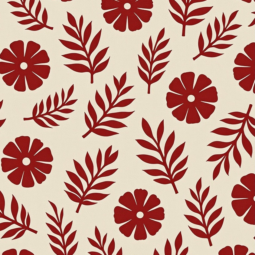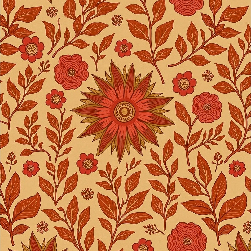 Abstract Fall Inspired Interlocking Floral And Vine Design(Red)