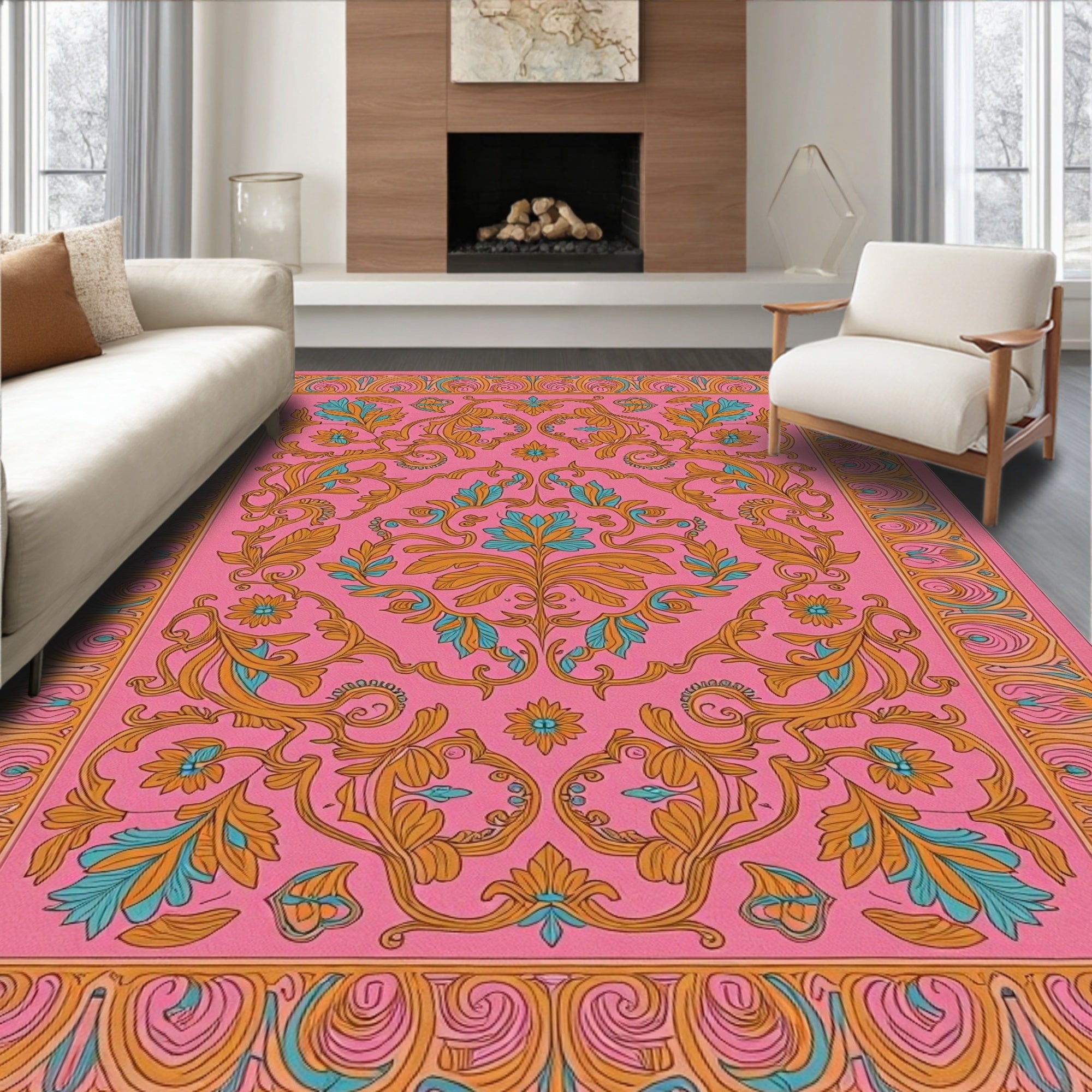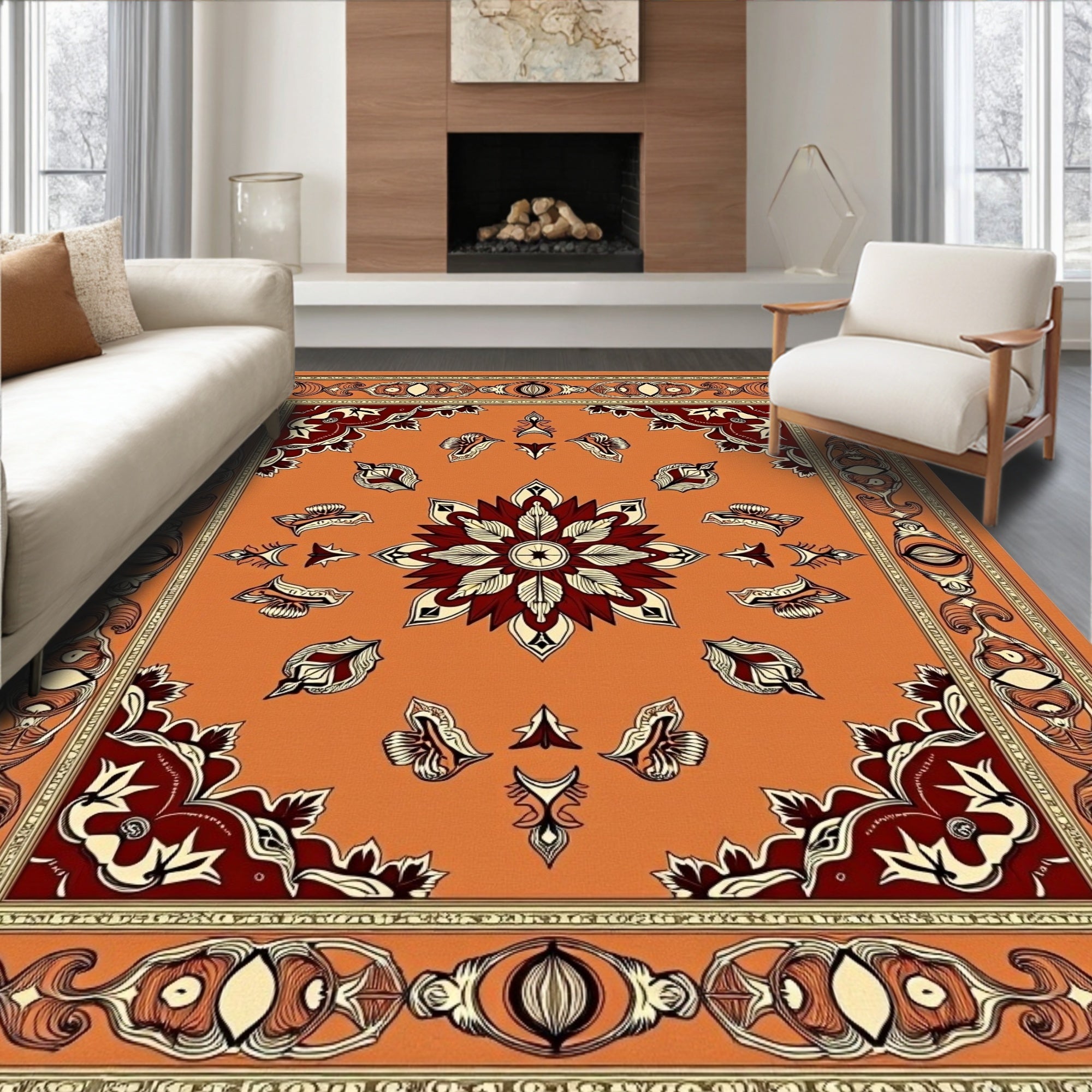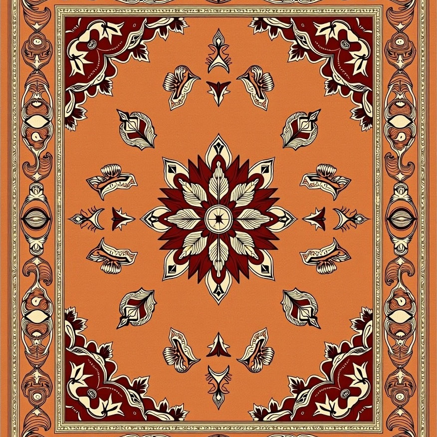 Vintage Floral Medallion Heritage Artisan Handwoven Distressed(Orange)