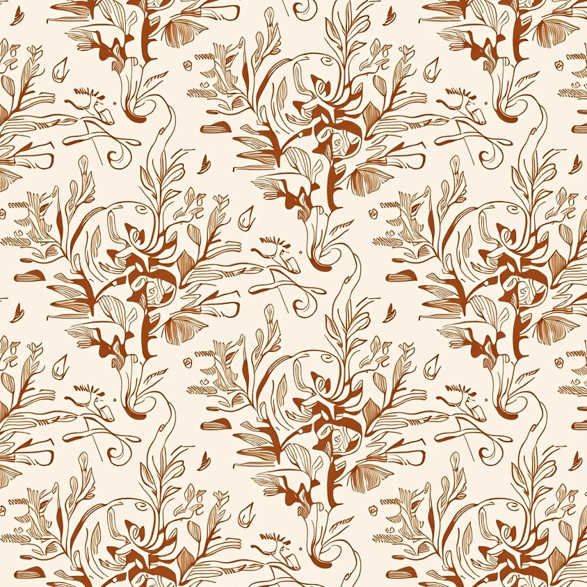 Whimsical Fern Interlocking Flourish and Autumn Petal Cascade(Beige)