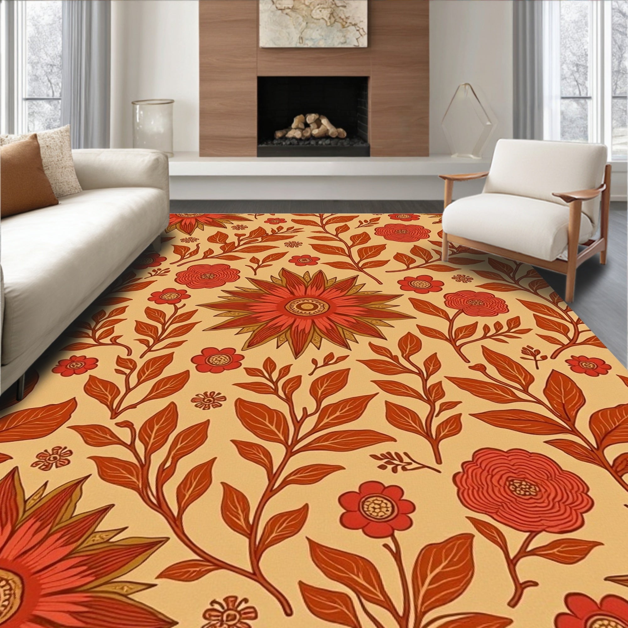 Subtle Boho Floral Tapestry Featuring Ochre and Earth Hues(Beige)