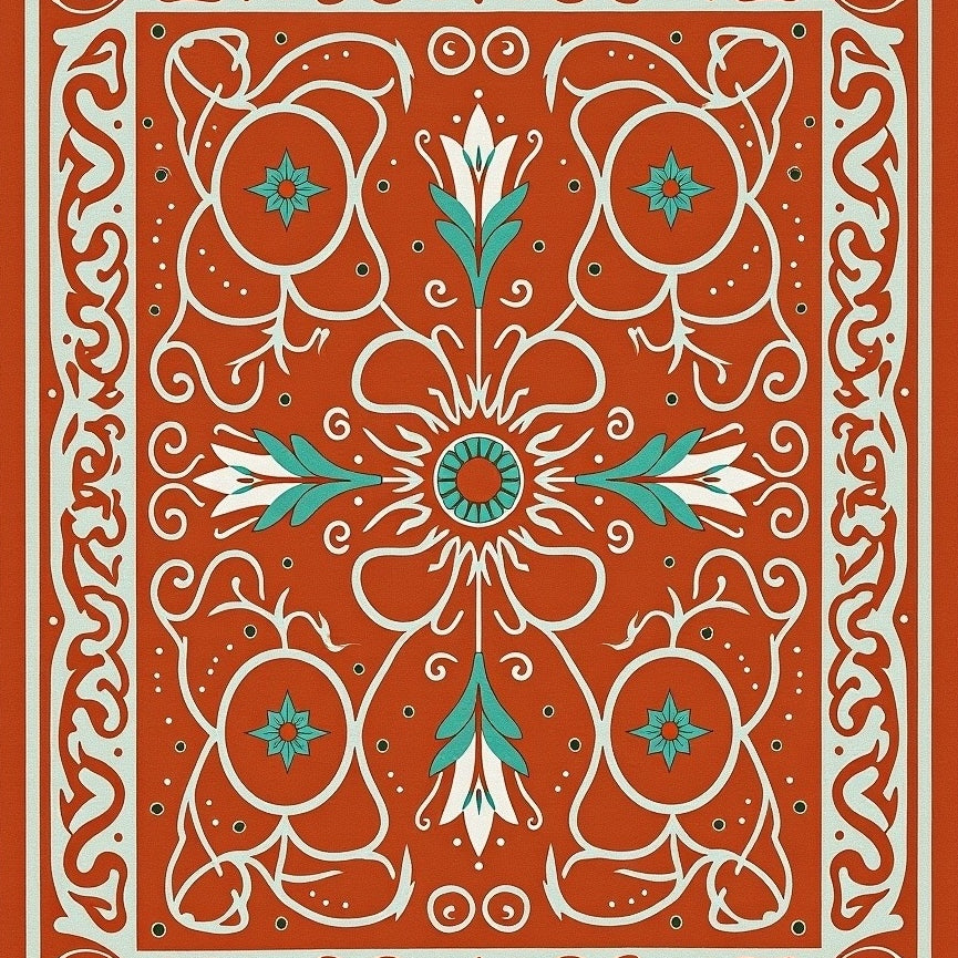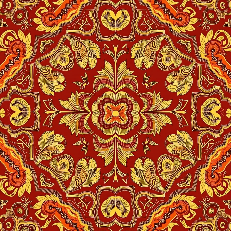Harvest Festival Interlocking Vinework with Ornamental Scrolls(Red)
