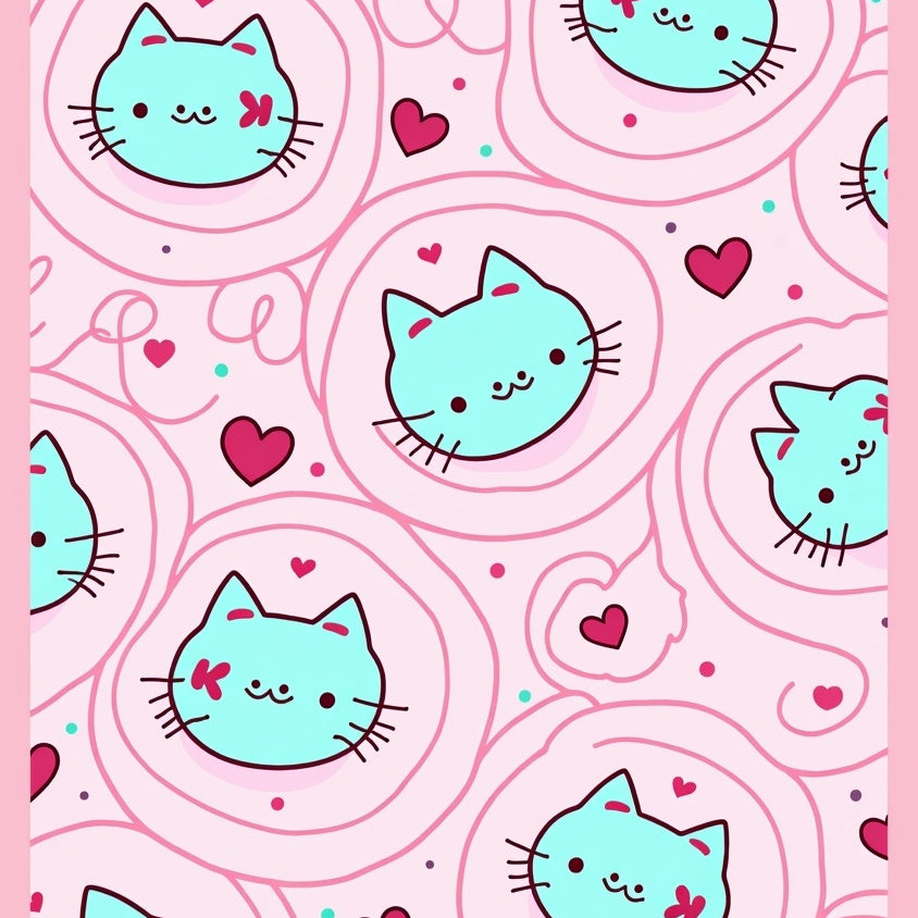 Kawaii Kitten Mosaic with Floral Accents and Motifs(Pink)