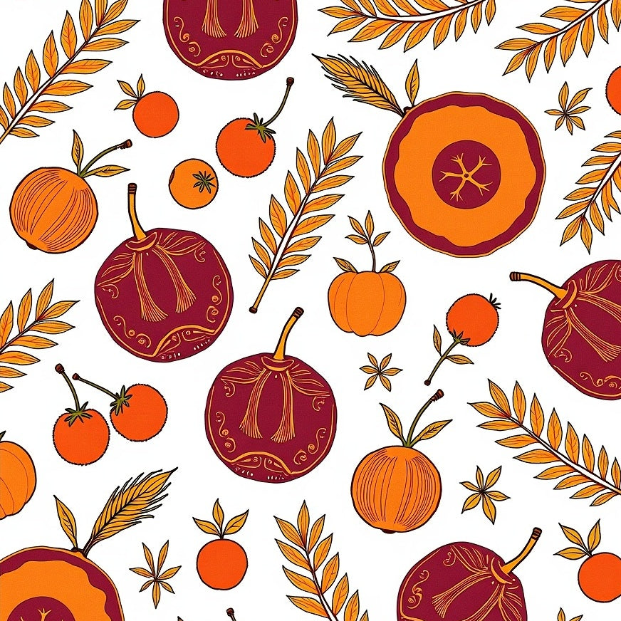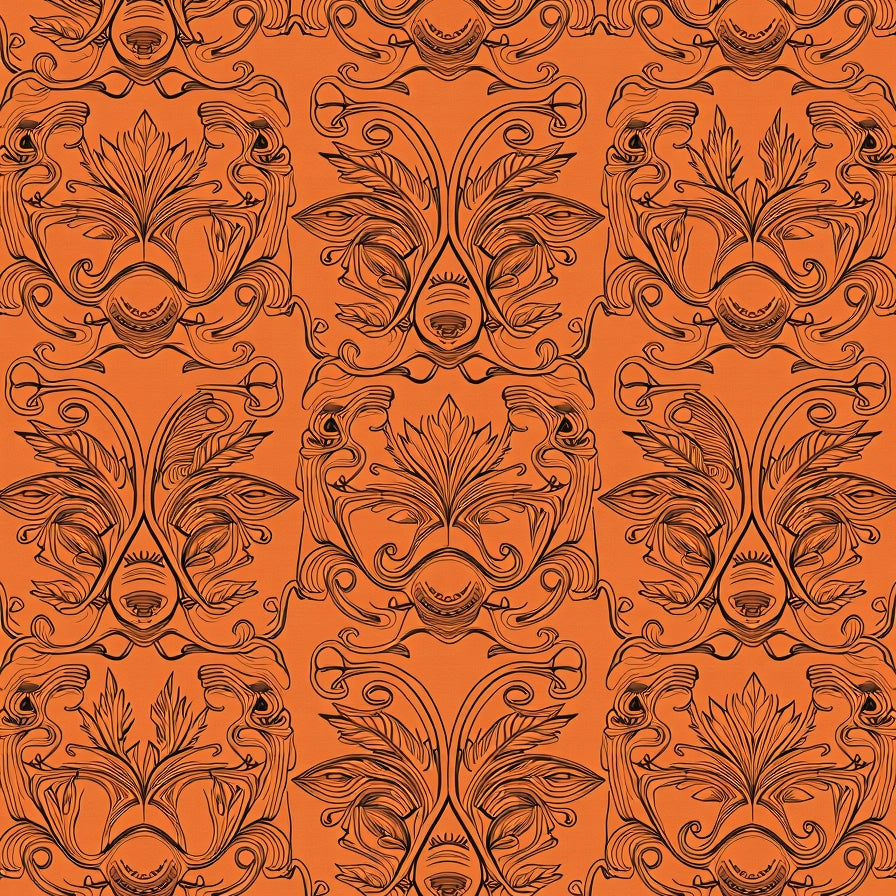 Harvest Vine Scrollwork with Stylized Maple Motifs and Ornate Baroque Flourish(Orange)