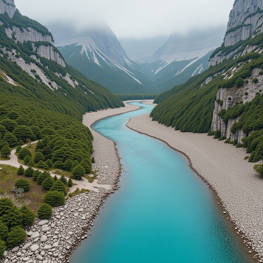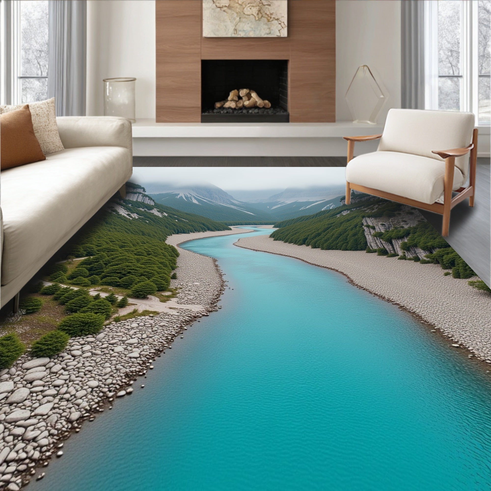 Natural Vista Mountain Stream Panoramic Horizon Perspective Illusion(Blue)