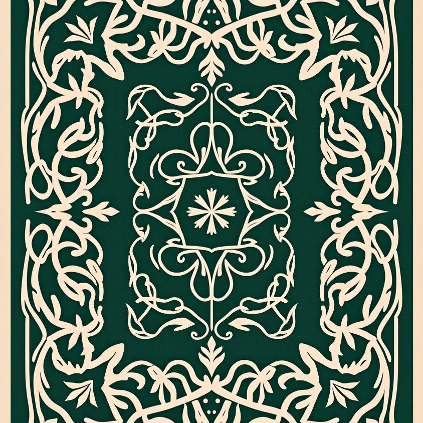 Botanical Vine Scrollwork with Art Nouveau Inspired Flourishes(Green)