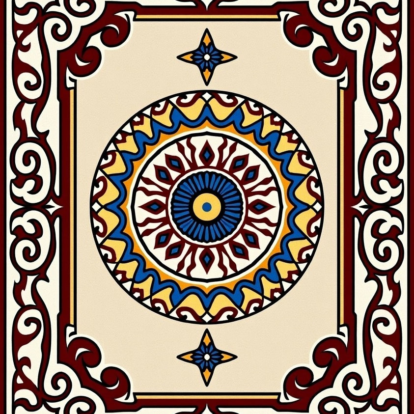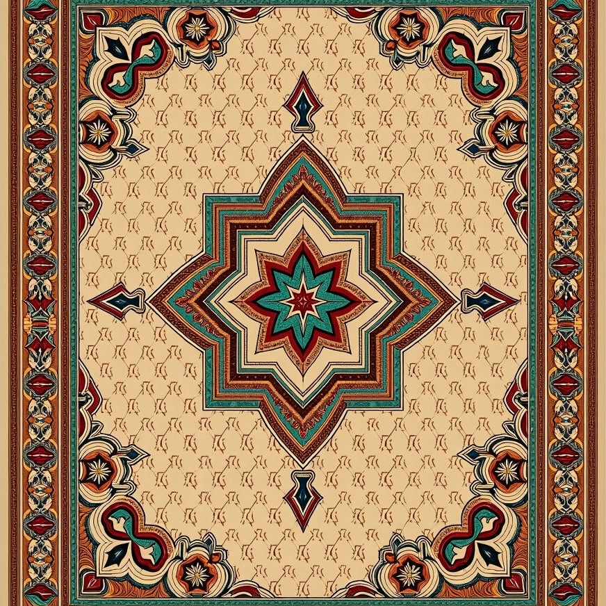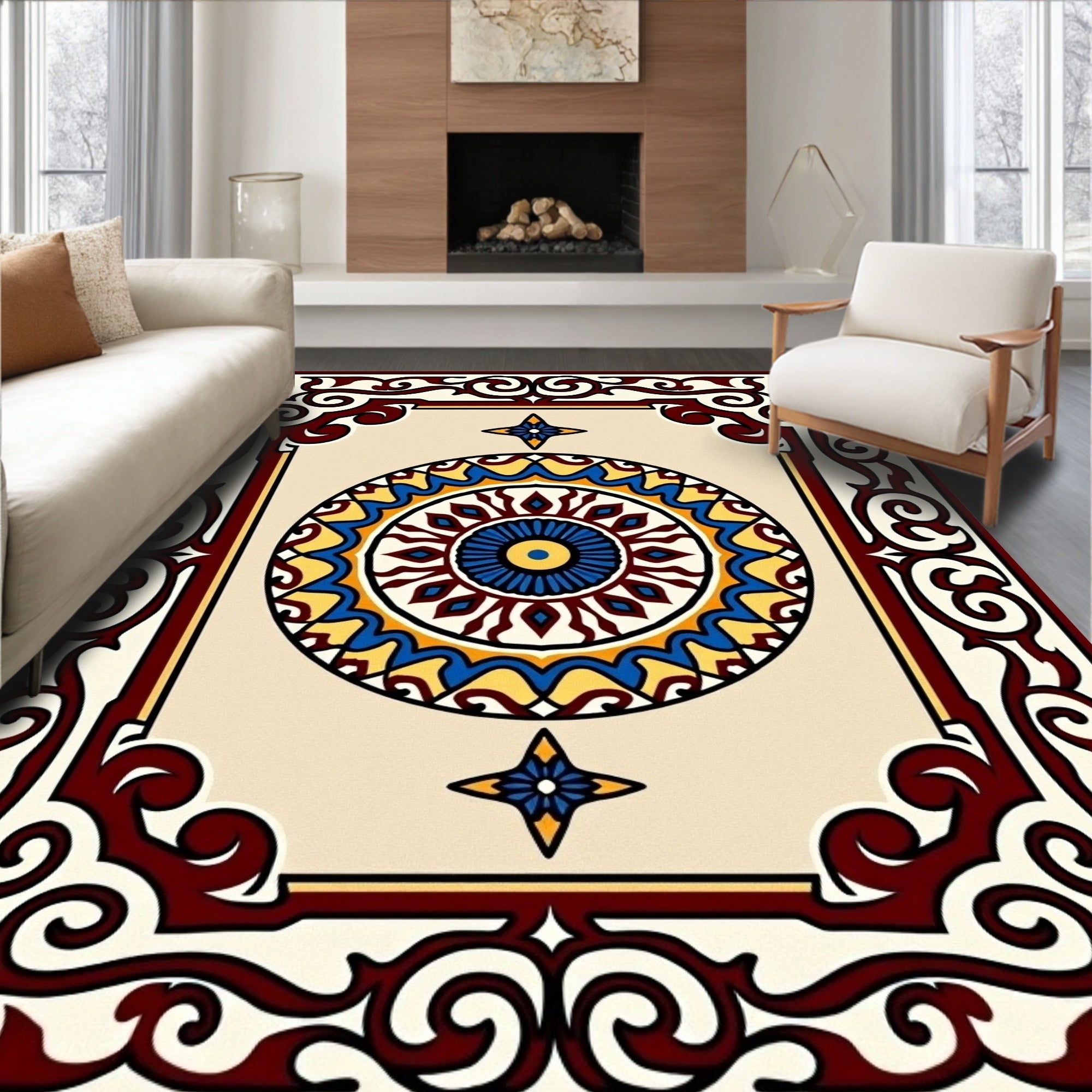 Medallion Tapestry Collection with Ornate Border Detailing(Beige)