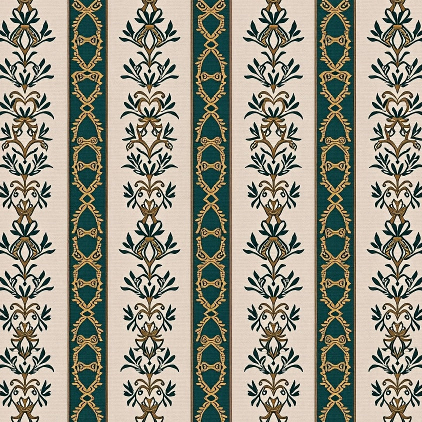Vintage Botanical Stripe with Emerald and Amber Highlights(Beige)