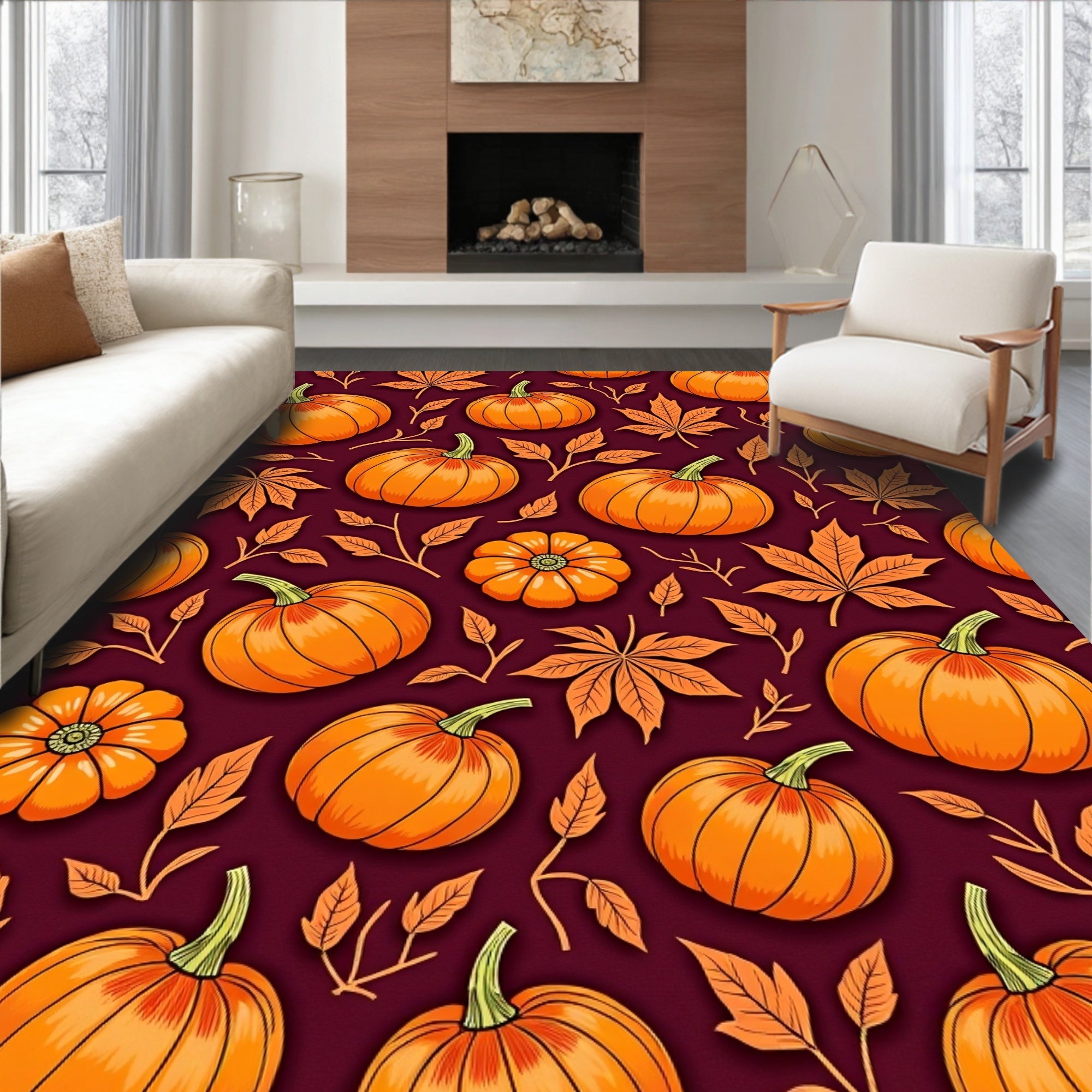 Harvest Moon Pumpkin Patch with Golden Autumn Foliage Non Slip Area(Orange)