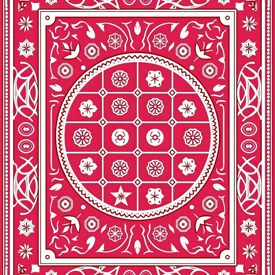 Snowflake Medallion Festive Interlocking Winter Holiday Accent Design(Red)