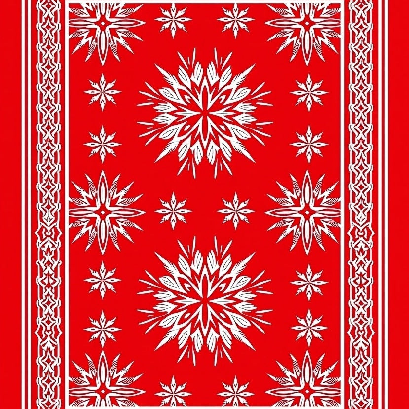 Nordic Starburst Interlocking Holiday Tiling with Whimsical Frosted Motifs(Red)