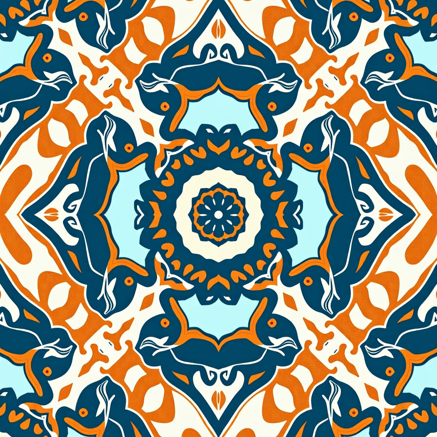 Ocean Wave Spiral Design with Coral Reef(Blue)