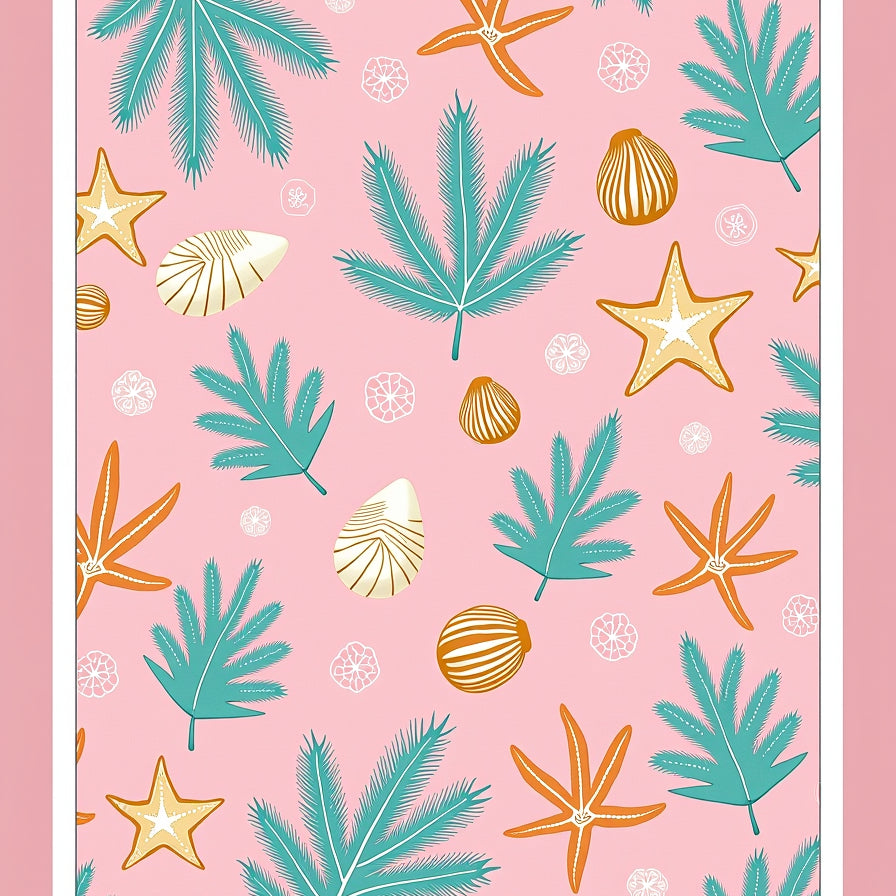 Nautical Seashell Mosaic with Starfish Motifs(Pink)