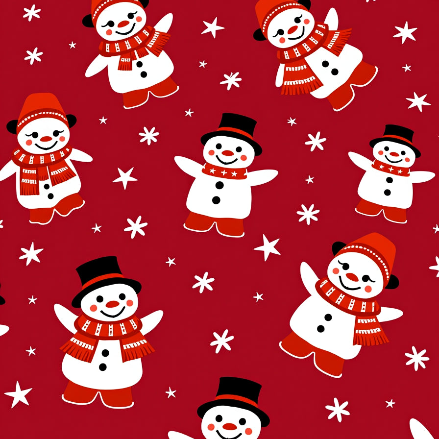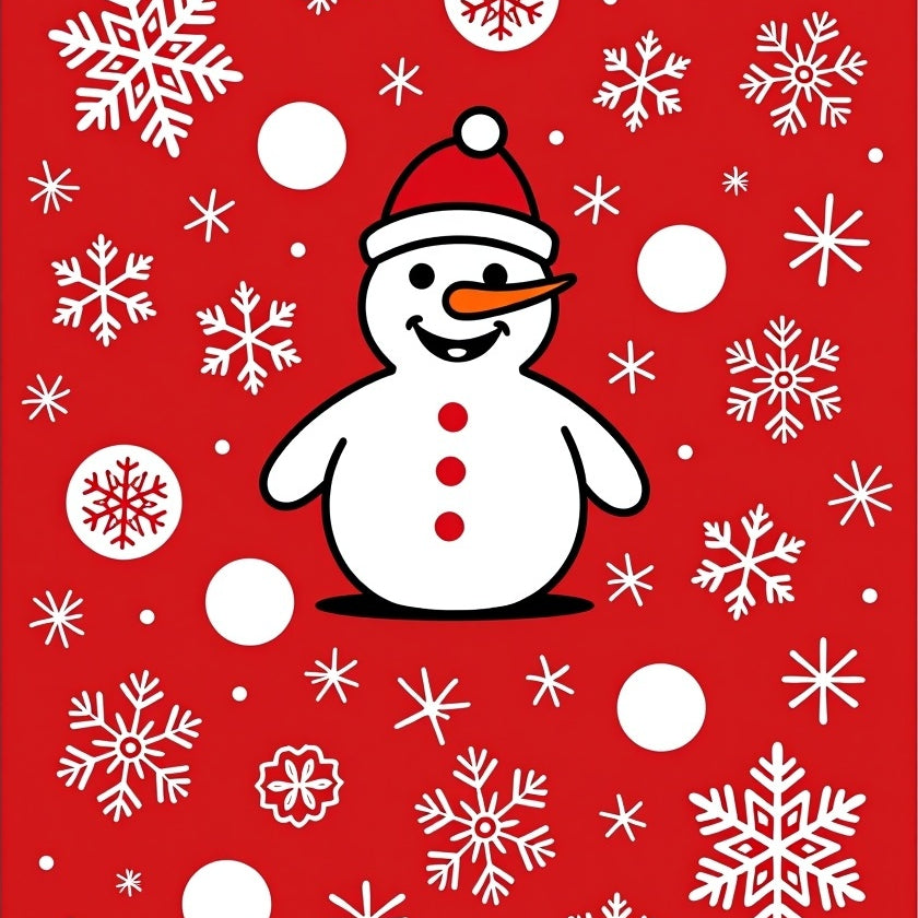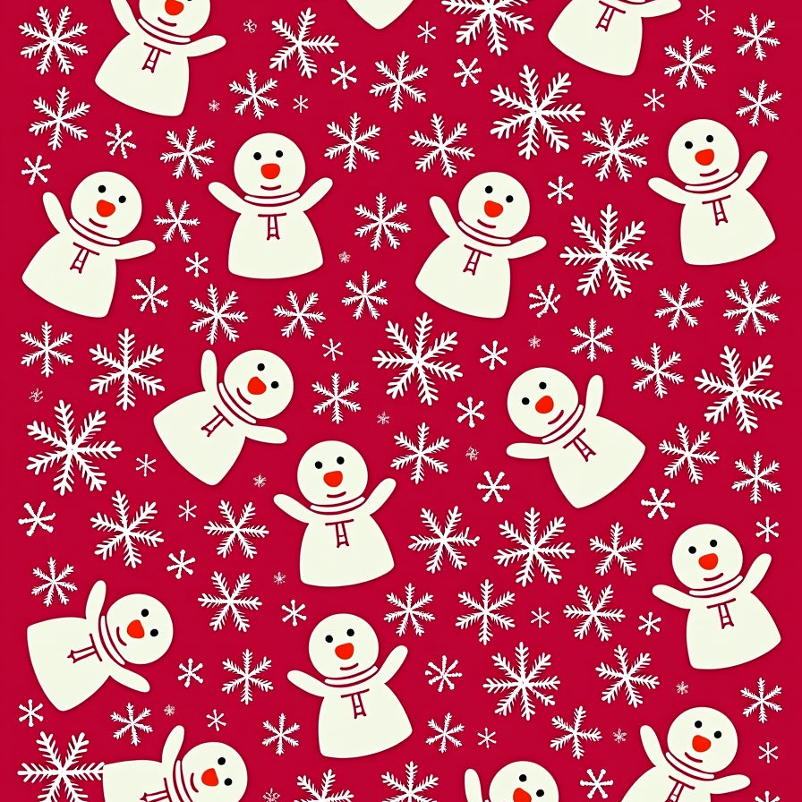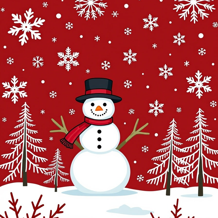 Festive Snowman Holiday with Falling Snowflakes Design(Red)