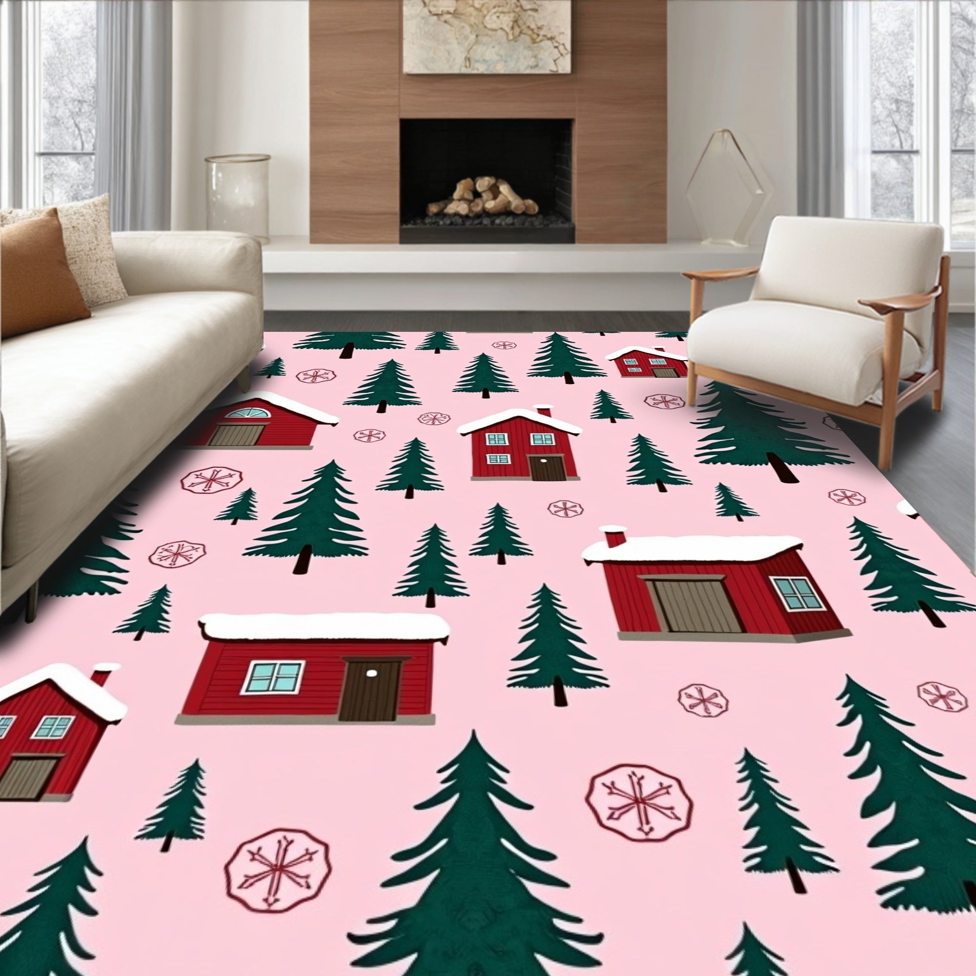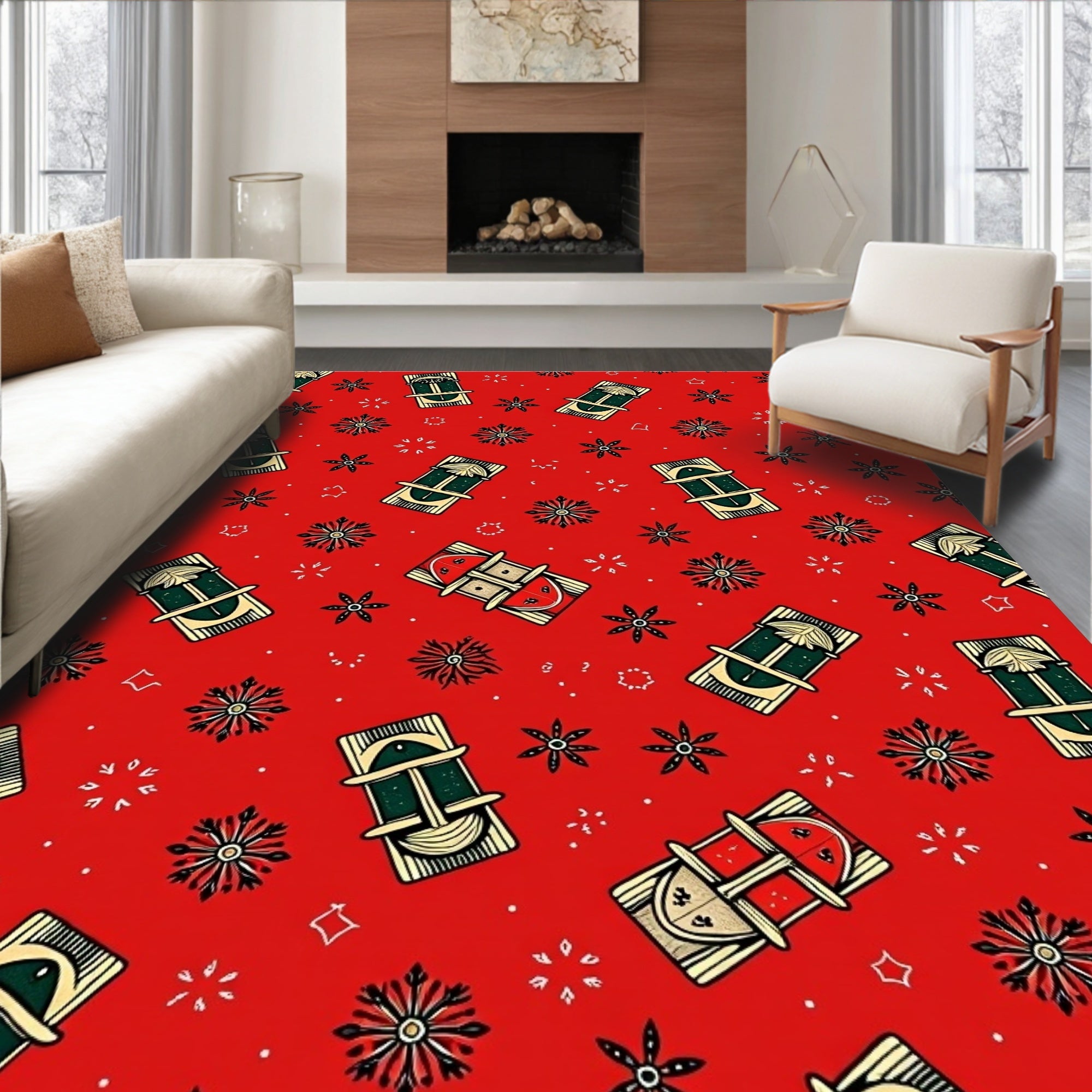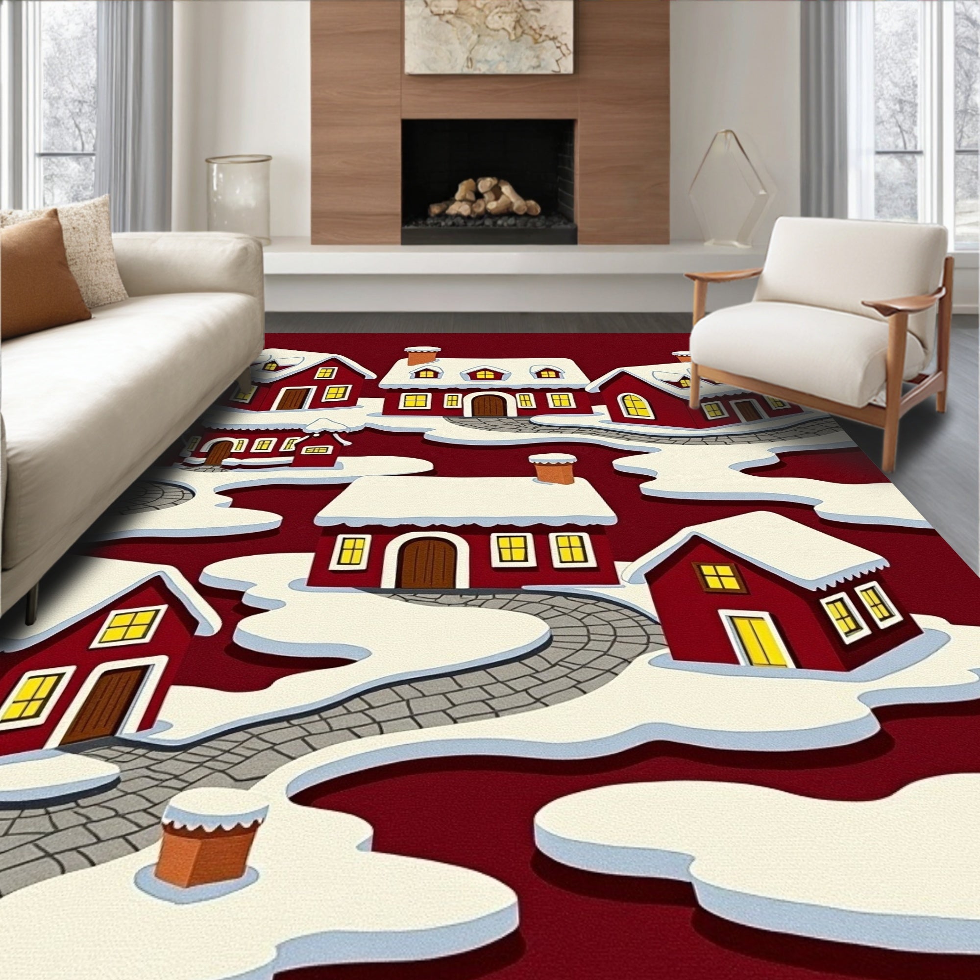 Vintage Christmas Village Snowy Landscape Floor Covering Design(Red)