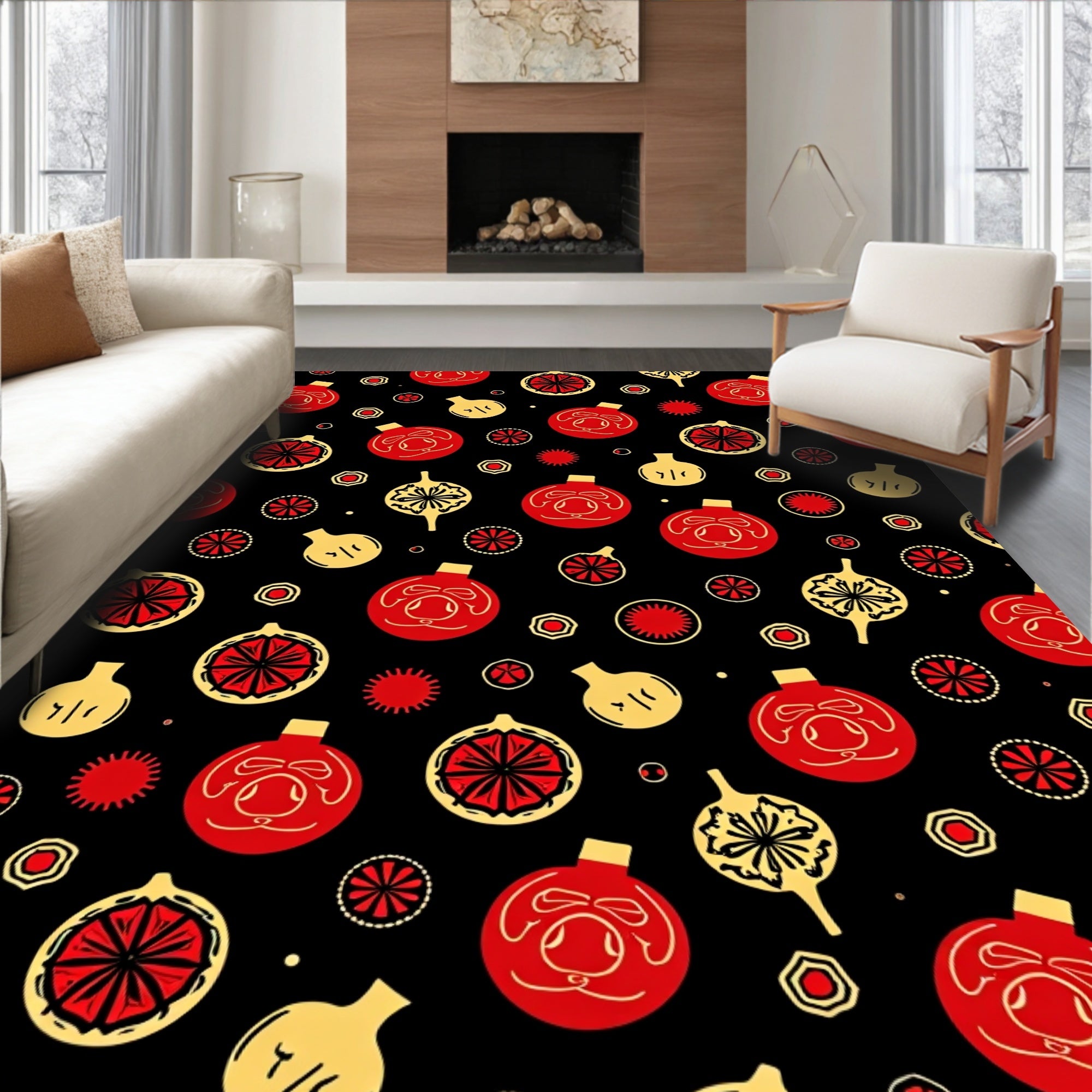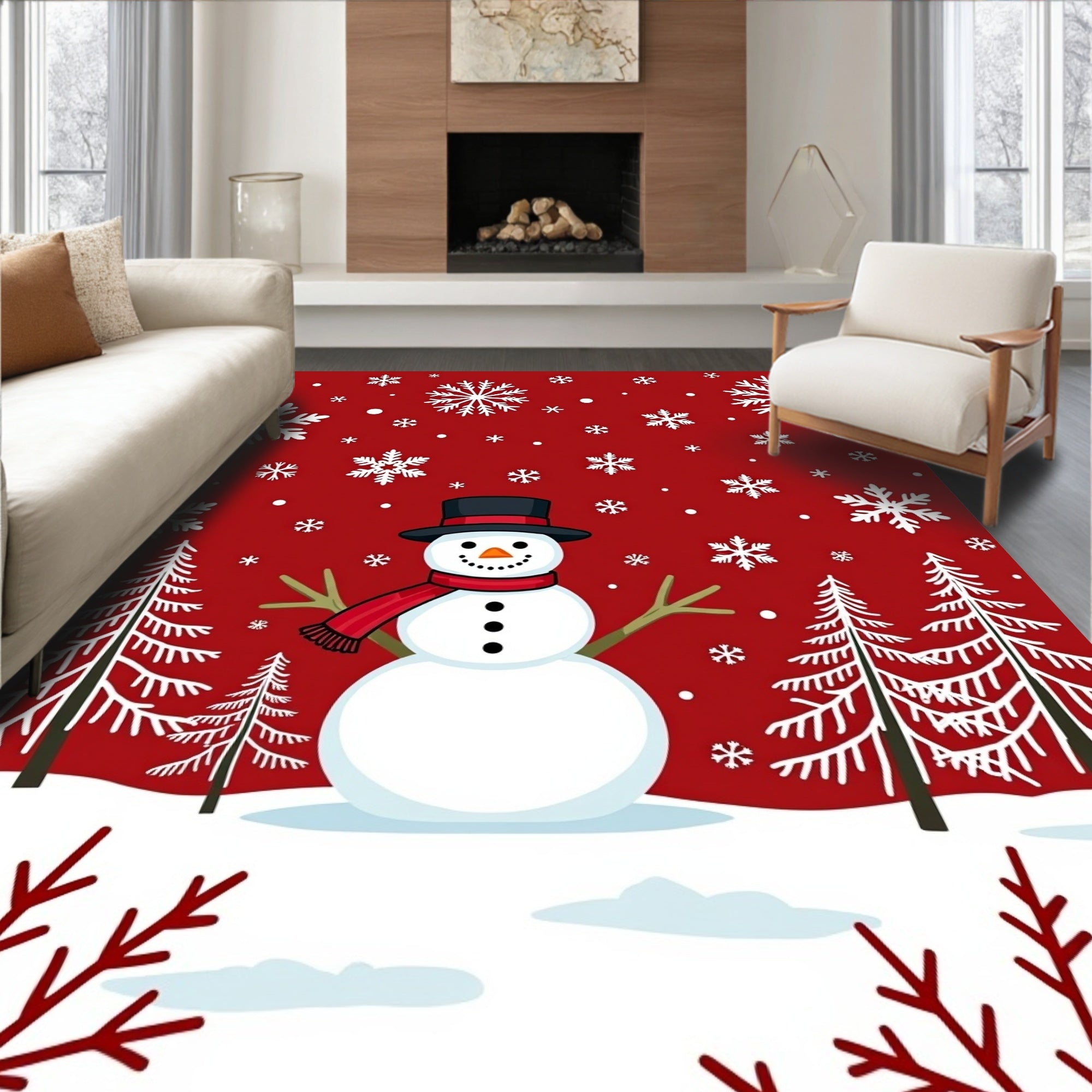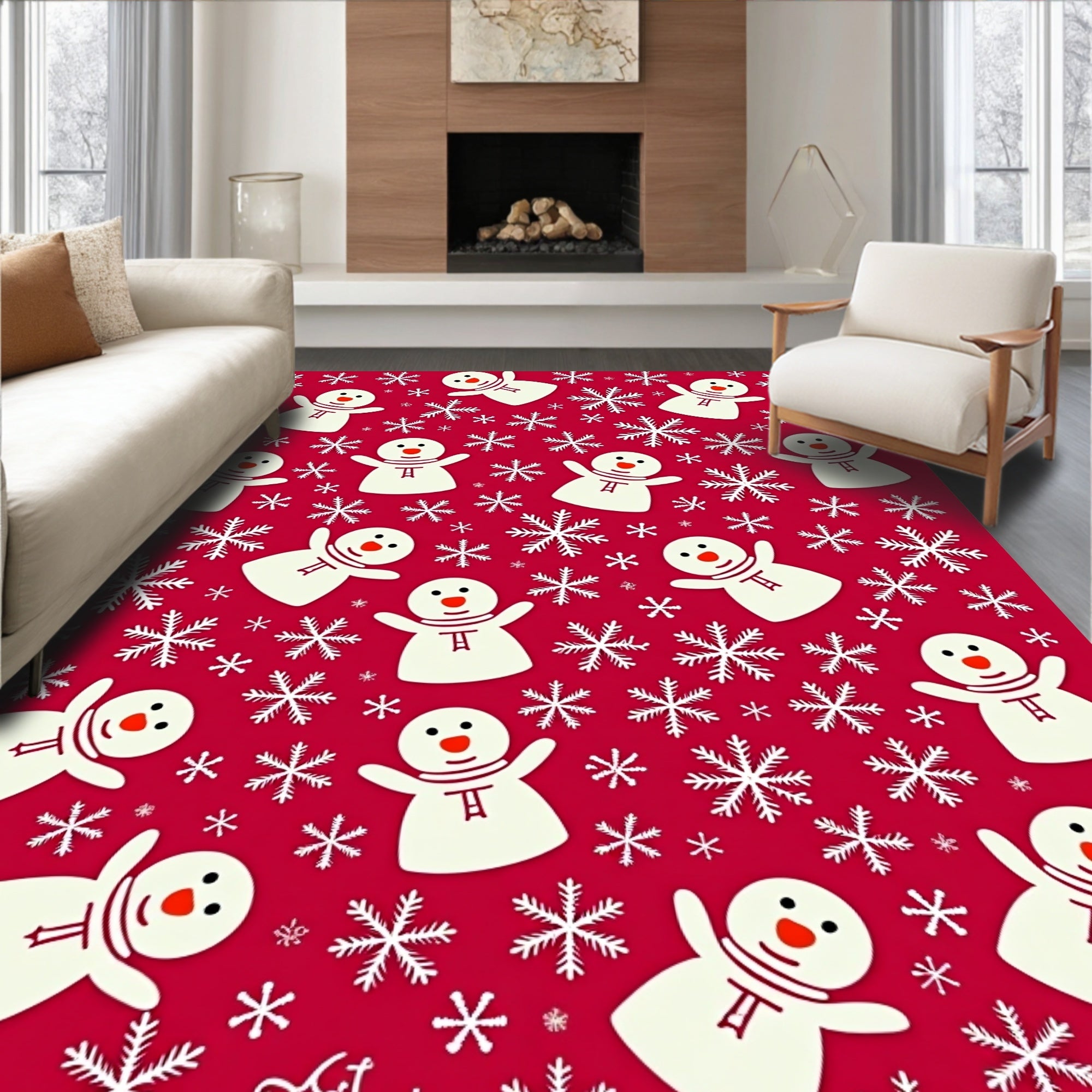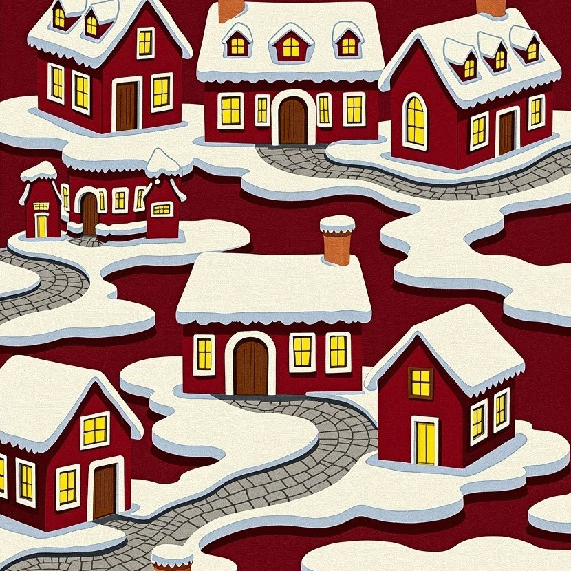 Vintage Christmas Village Snowy Landscape Floor Covering Design(Red)