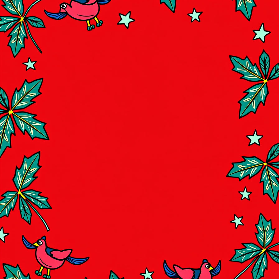 Charming Cardinal Birds with Holly Berry and Starry Sky Motif(Red)