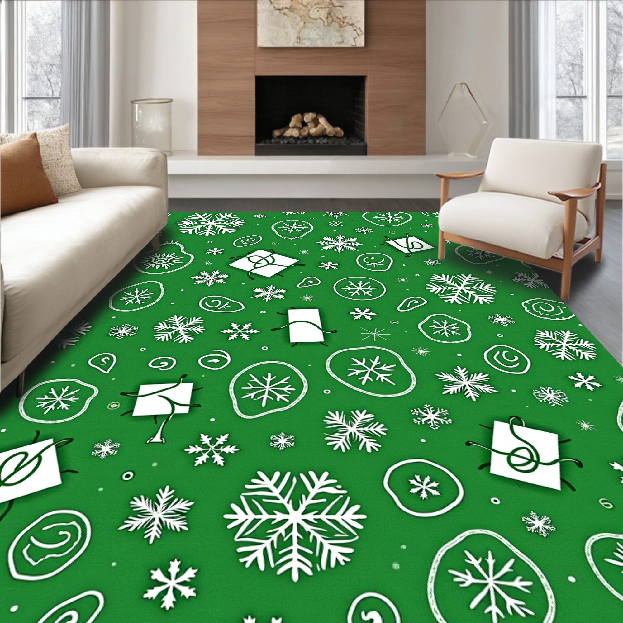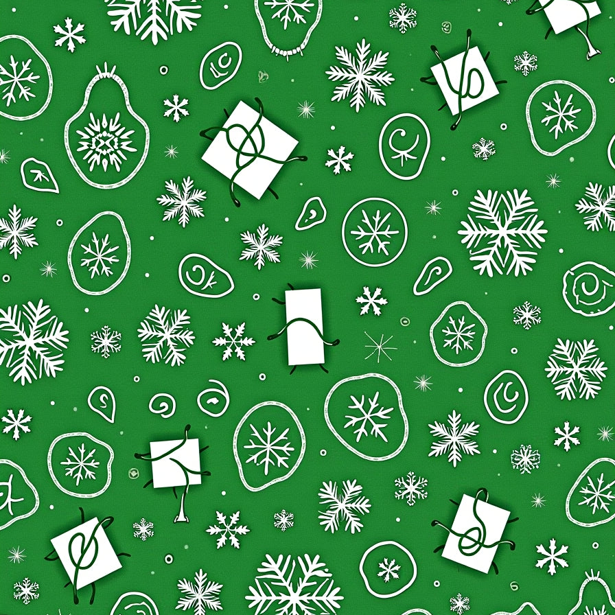 Whimsical Holiday Characters Amidst Frosty Snowflakes and Gift Box(Green)