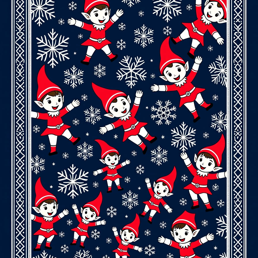 Festive Yuletide Elves with Twinkling and Holiday Parcel Illustrations(Black)