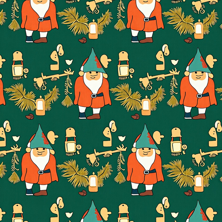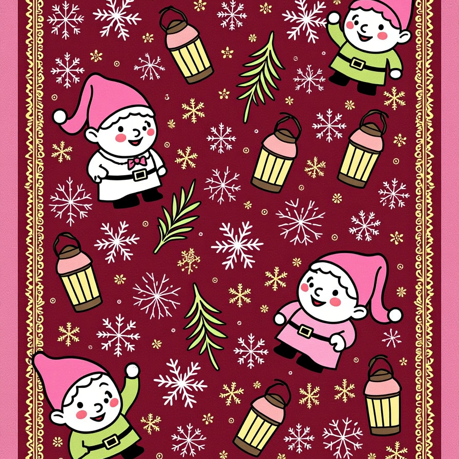 Whimsical Winter Forest Gnomes and Pine Bough Design with Gift Motif Details(Pink)