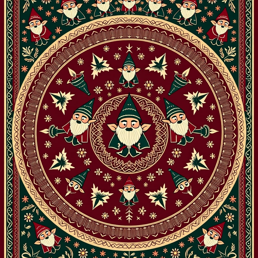 Nordic Gnome Holiday Gathering with Snowflake Motifs and Candle Accents(Red)