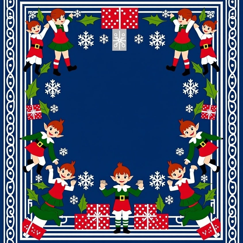 Whimsical Winter Folklore Entryway Featuring Seasonal Elves(Blue)