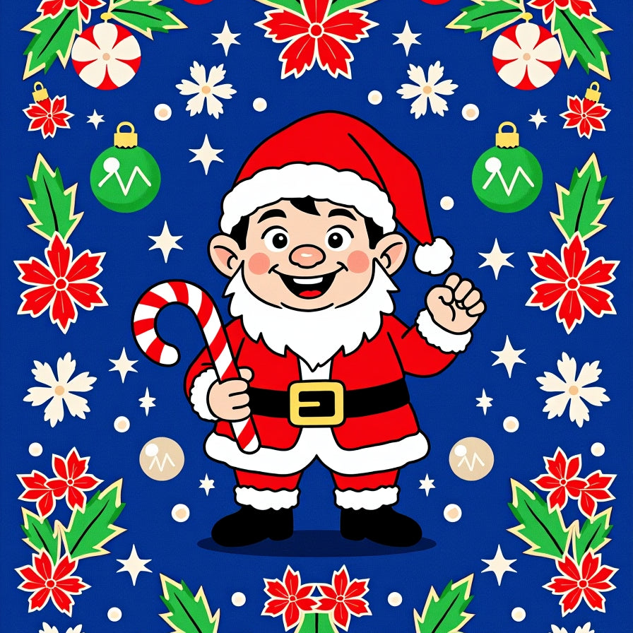 Vintage Holiday Charm with Gnome Cane and Festive Ornament(Blue)